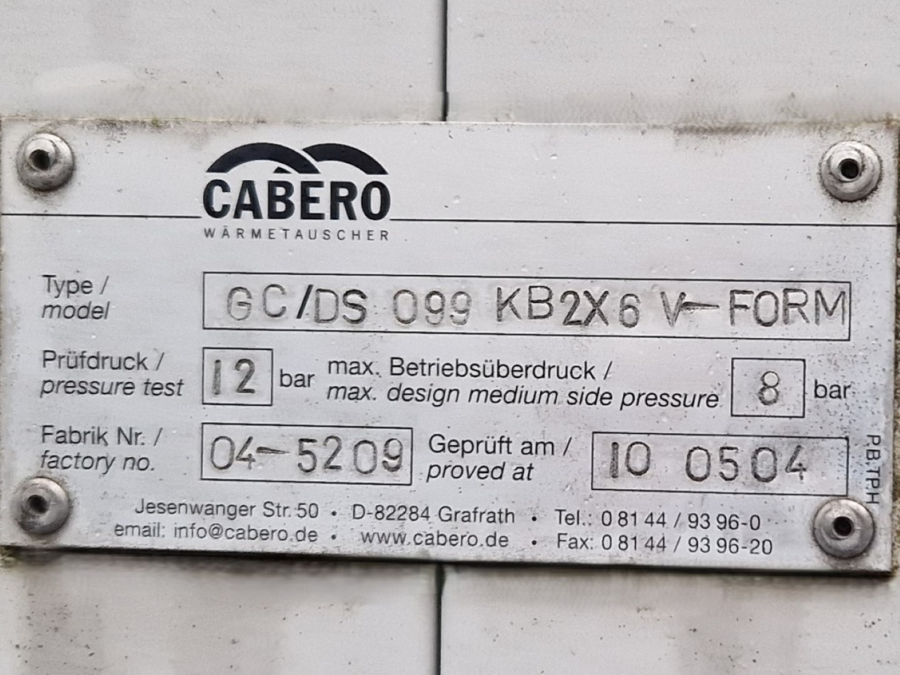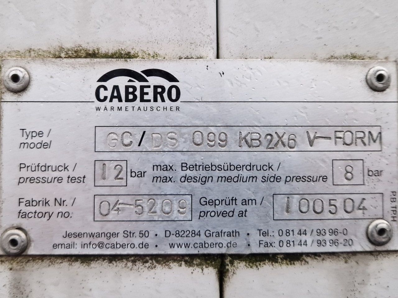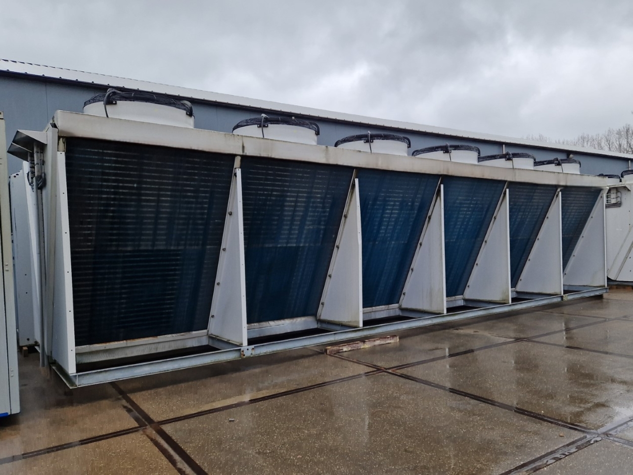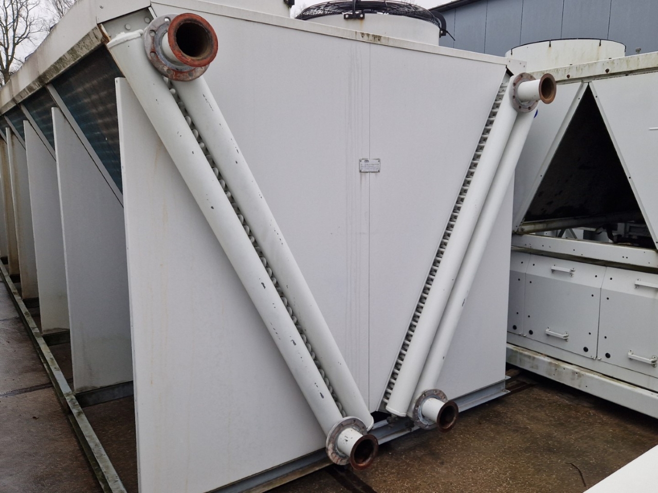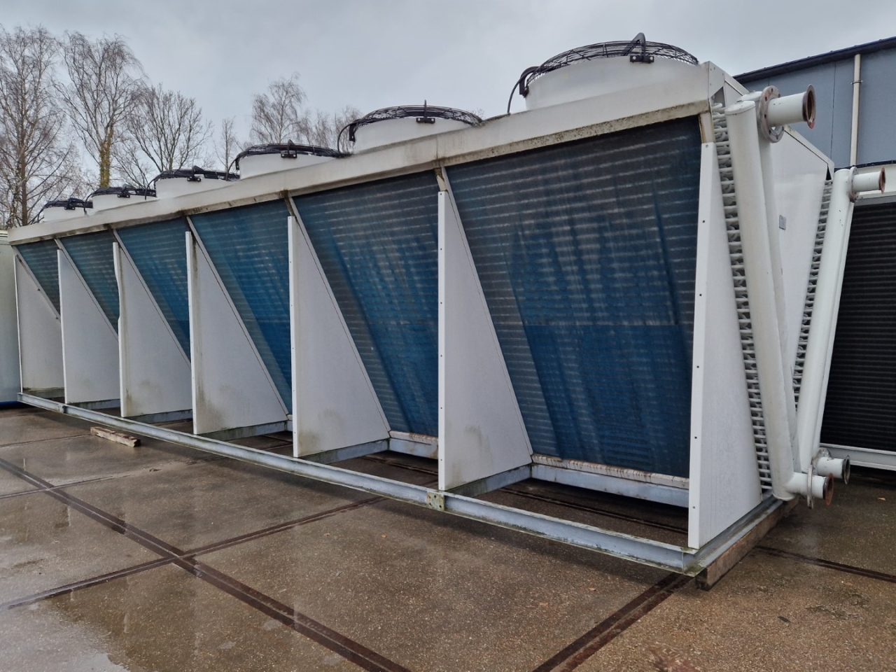 Used Cabero GC/DS 099 KB2X6 V-FORM drycooler. Complete with 12 Ziehl-Abegg FC090-SDS.7Q.6 fans - 50 Hz - 3,6/2,5 kW - 890/700 RPM - diameter 900 mm and a total airflow of 305.000 m³/h. Capacity of 1720,1 kW from 60°C too 40°C.