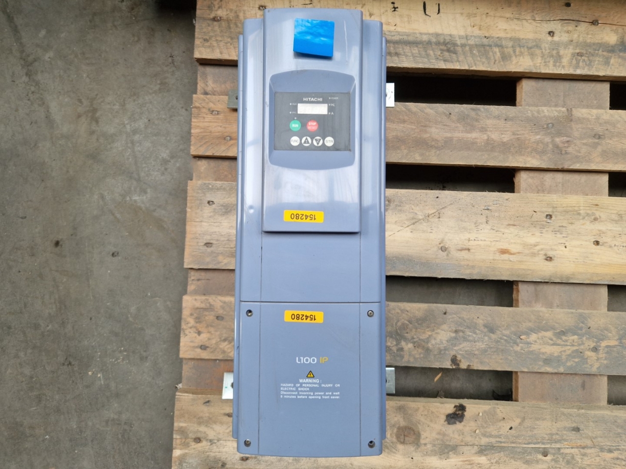 Used Hitachi L100IP-040HFE 510 frequency converter with the following specifications: 5,5 kW / 7,5 HP. Dimensions: 490x260x280 mm (LxWxH).
