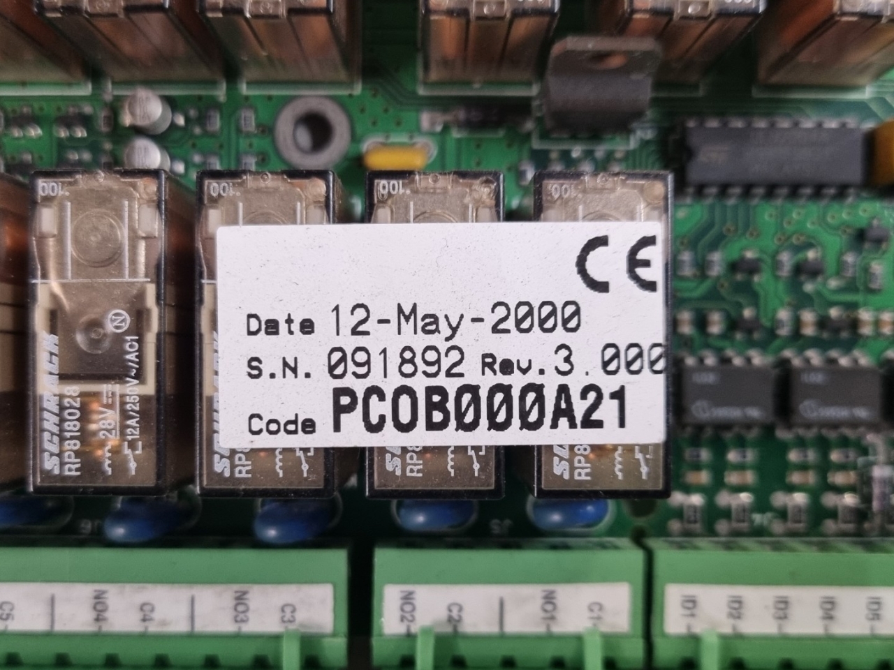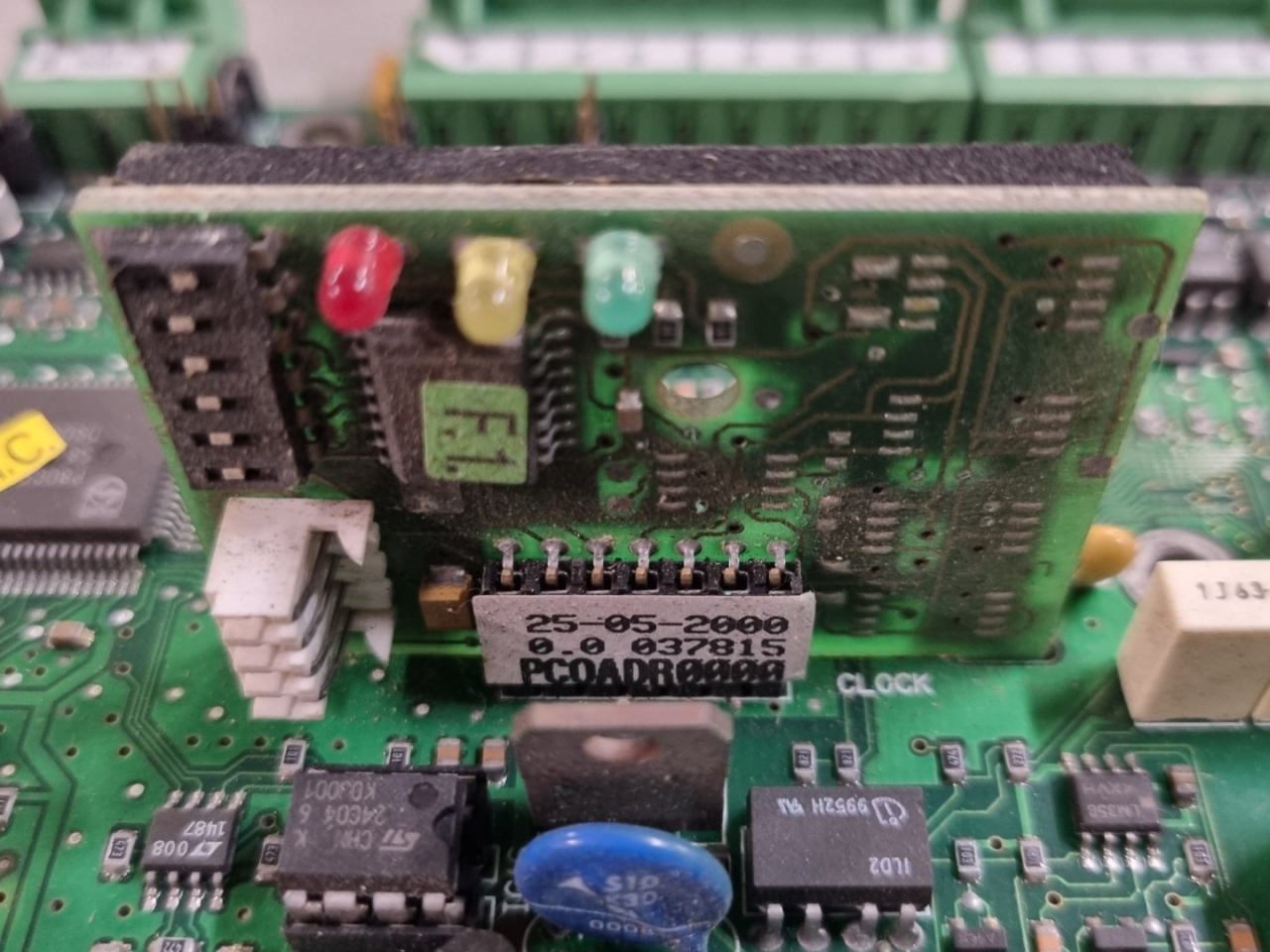 Used Carel PCOB000A21 printed circuit board. Includes PCOADR0000 module.