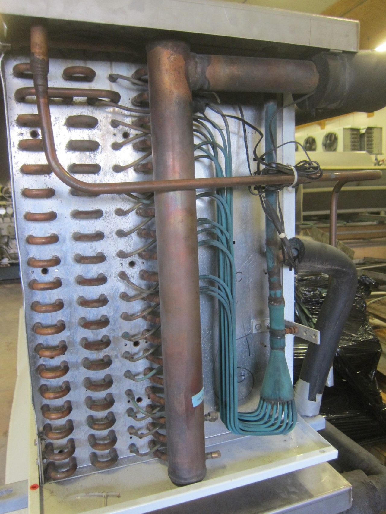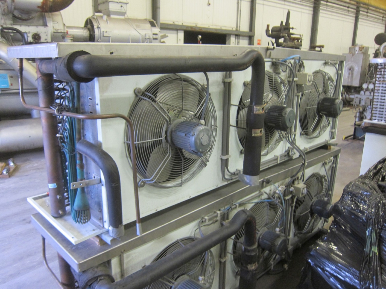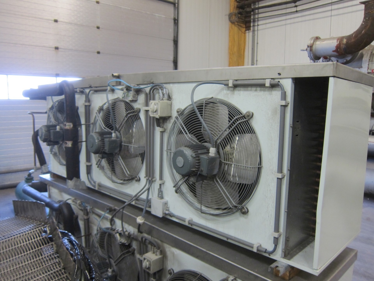 Helpman LEX 26 H evaporator with Hot gas defrosting. This used evaporator has 3 fans: 0,22 kW / 1330 RPM / Ø = 500 mm / 14000 m³/h