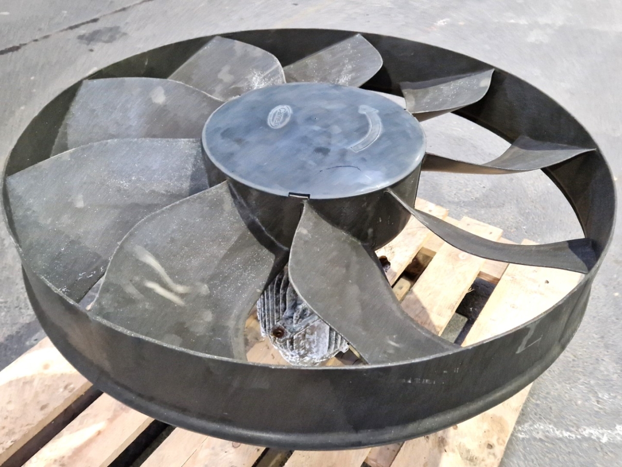 Gebrauchter Carrier CM29/T Lüfter 50 Hz – 1,4 kW – 950 U/min – Durchmesser 770 mm. Abmessungen: 780x780x470 mm (LxBxH).