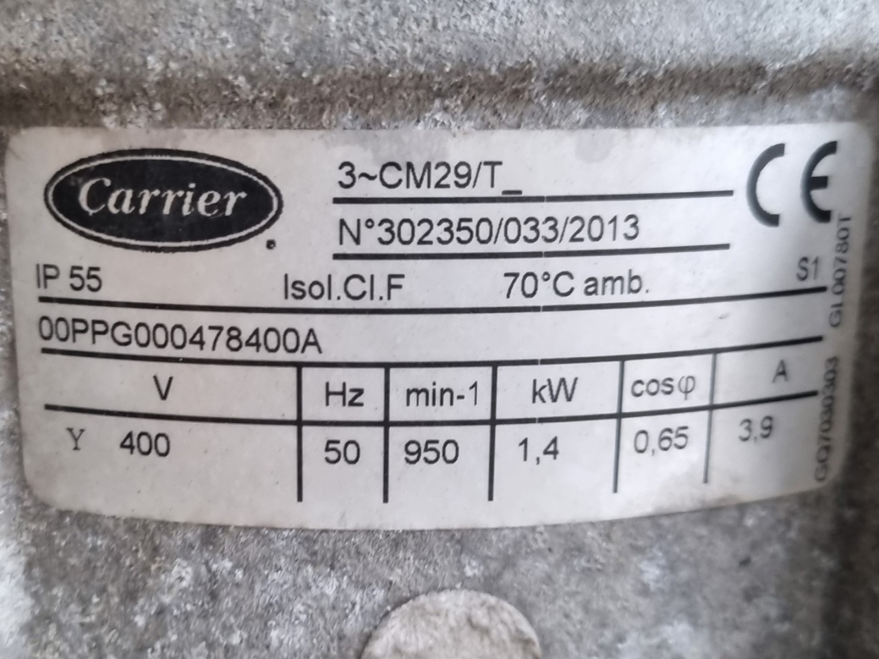 Gebrauchter Carrier CM29/T-Lüfterelektromotor mit den folgenden Spezifikationen: 50 Hz – 1,4 kW – 950 U/min.