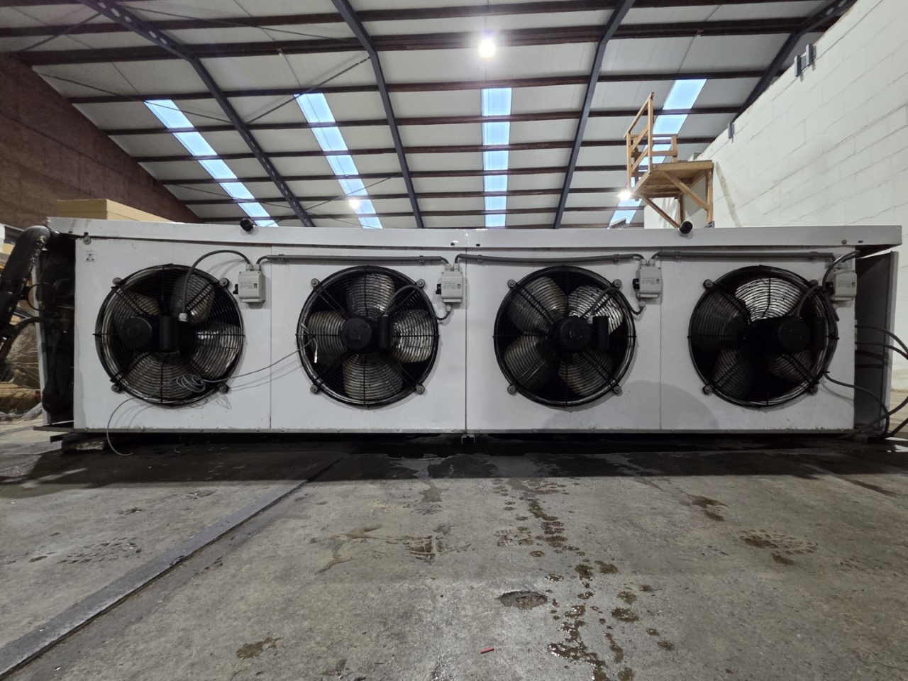 Used Helpman LEX 30-230-E Freon evaporator with electric defrost. Complete with 4 ATB ABFT 71/4C-7RH fans - 50 Hz - 0,37 kW - 1350 RPM - diameter 508 mm and an airflow of 26.000 m³/h.
