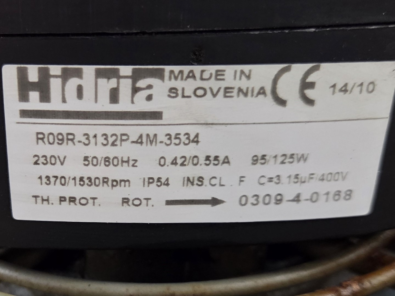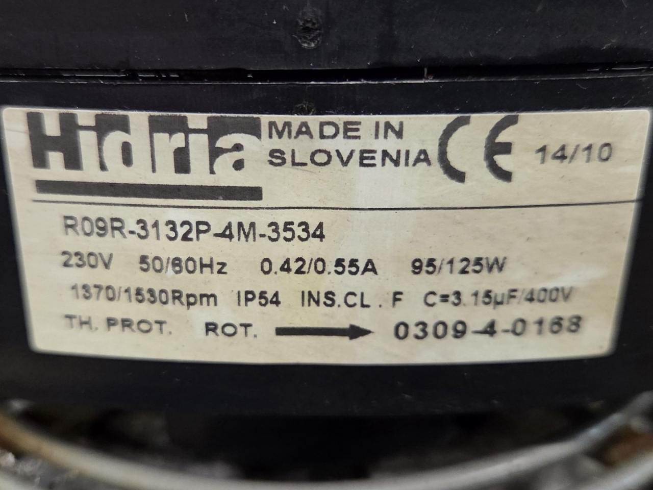 Used Hidria R09R-3132P-4M-3534 fan with the following specifications: 50/60 Hz - 0,10/0,13 kW - 1370/1530 RPM - diameter 300 mm.