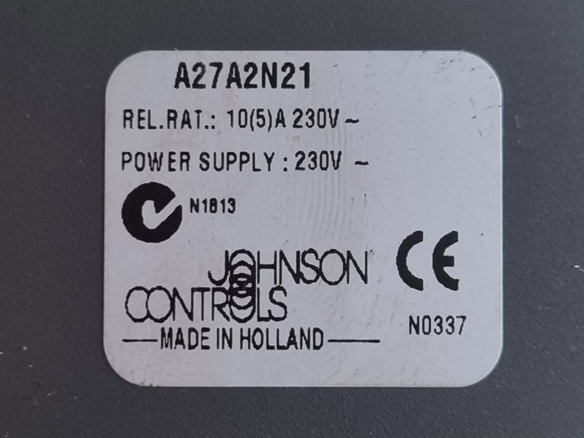 Used Johnson Controls A27A2N21 controller. Power supply: 230V.