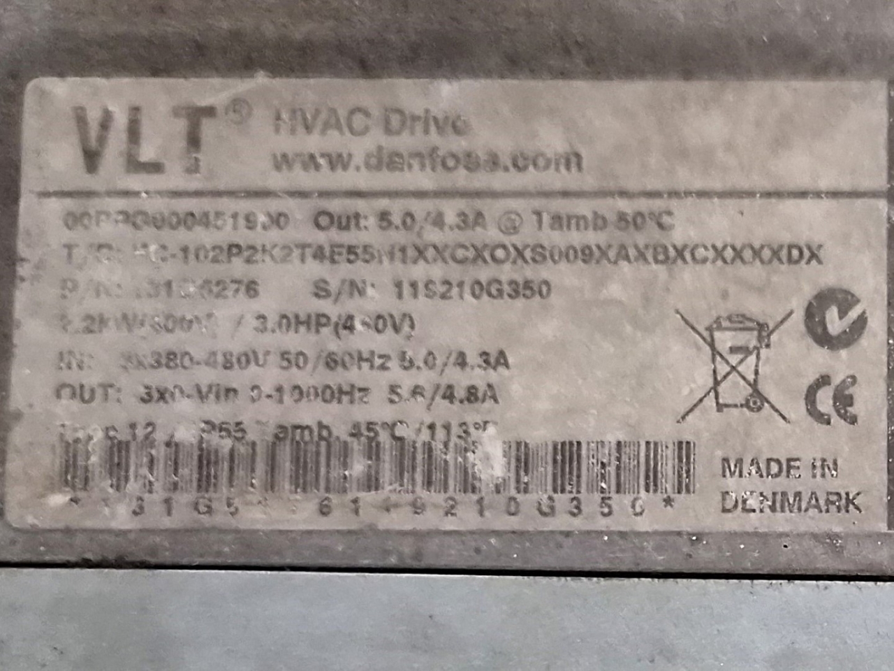 Used Danfoss VLT FC-102P2K2T4E55H1 frequency regulator - 2,2 kW (400V) / 3.0 HP (460V). Dimensions: 340x450x220 mm (LxWxH).