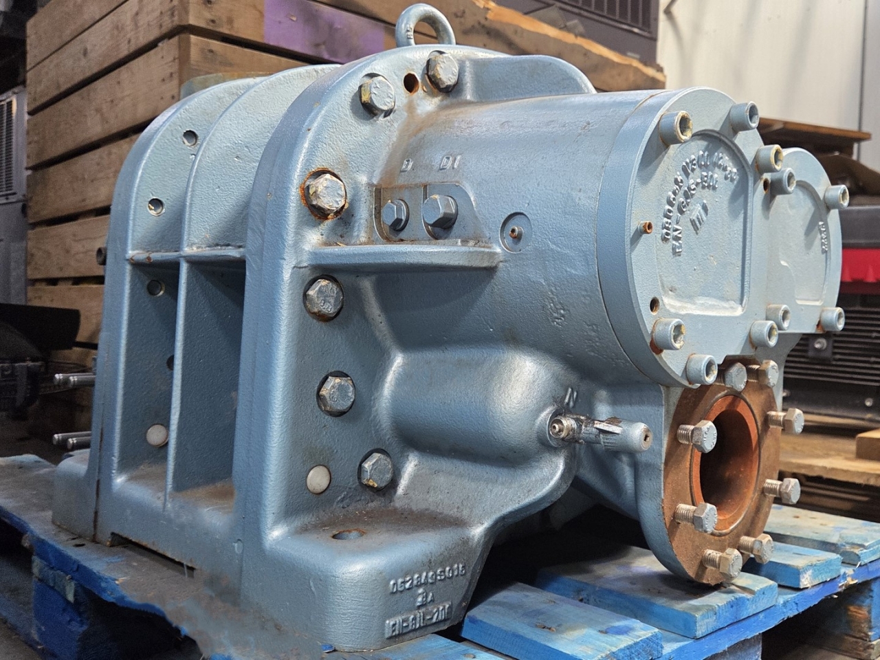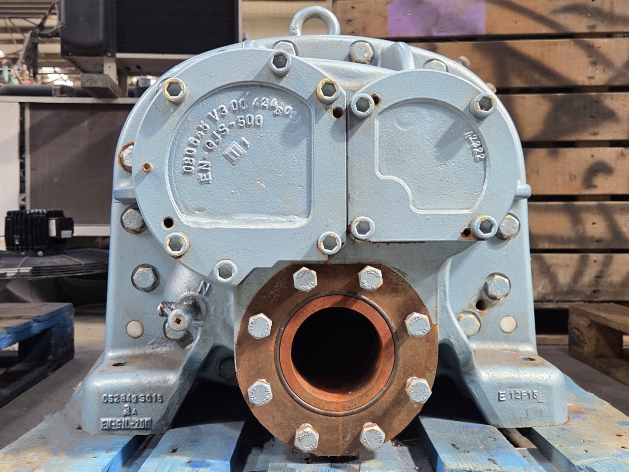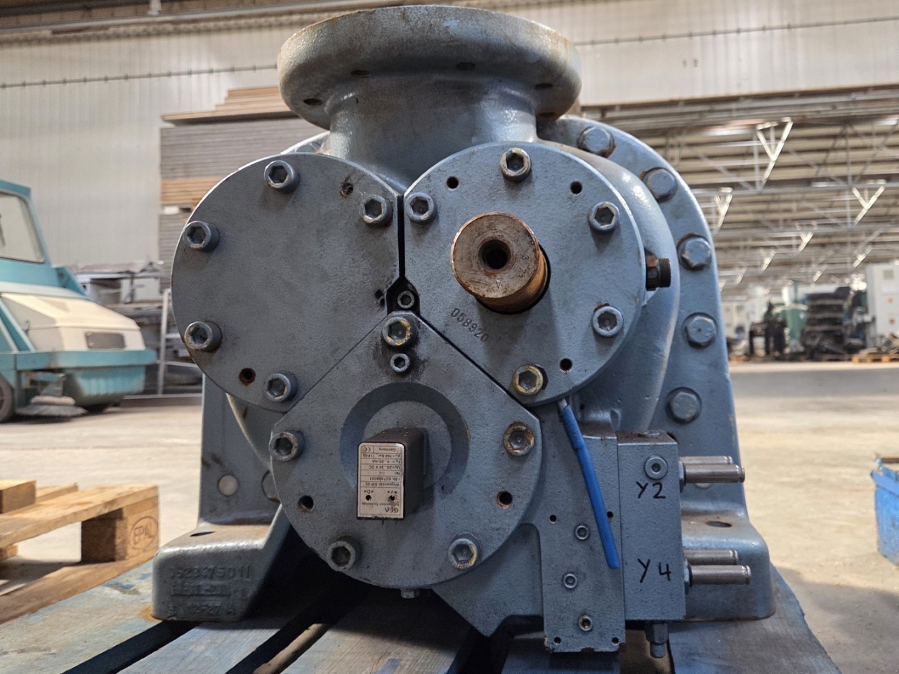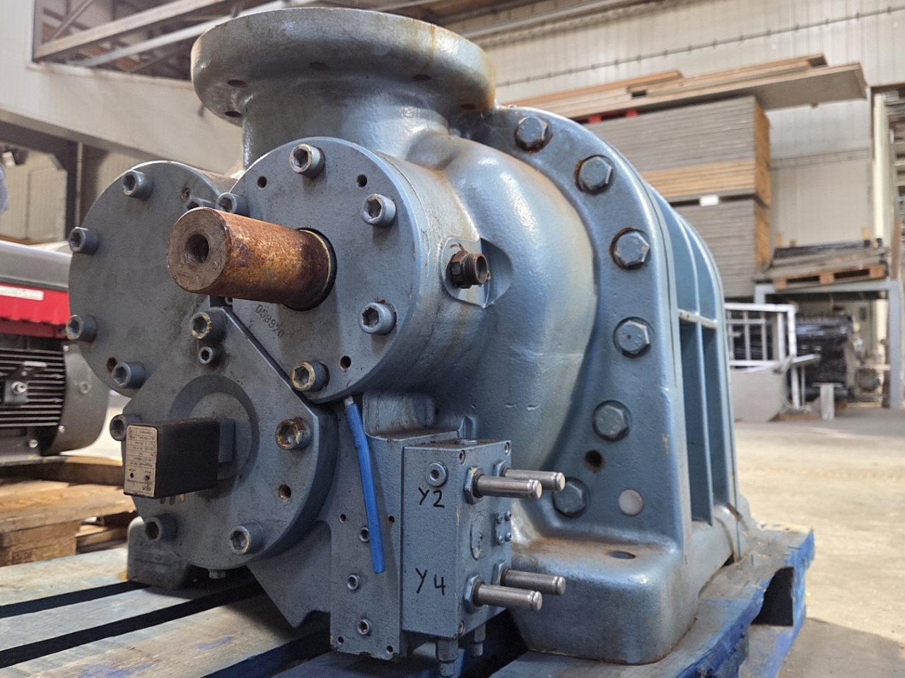 Used Grasso SR-S48S-28 screw compressor on NH3 (Ammonia). The compressor has a displacement of 1.579 m³/h.