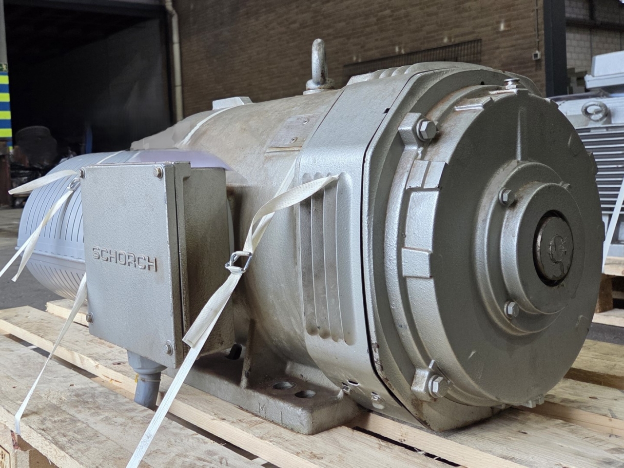 Gebruikte Schorch KN7200M-BB014-151 elektromotor met de volgende specificaties: 50/60 Hz - 37,0/42,5 kW - 1460/1760 RPM.