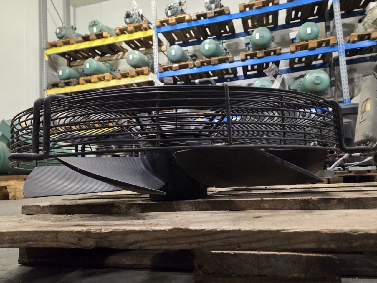 Gebruikte Ziehl-Abegg FE071-SDA.6F.V7 ventilator - 50 Hz - 0,88/0,62 kW - 900/690 tpm - diameter 710 mm. Afmetingen: 840x840x210 mm (LxBxH) & 16 kg.