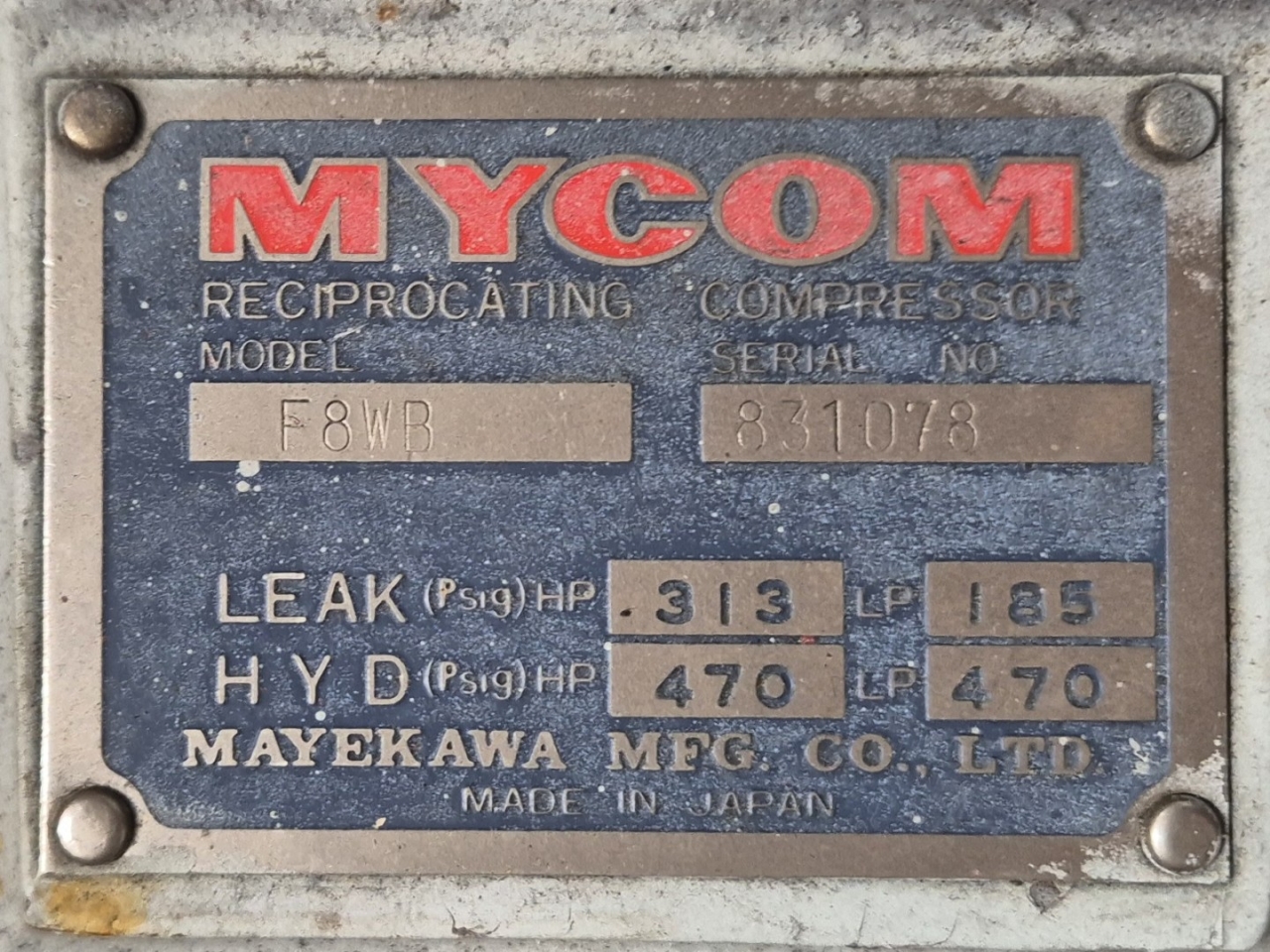 | Compressor(s) type & model | 2x Mycom F8WB |