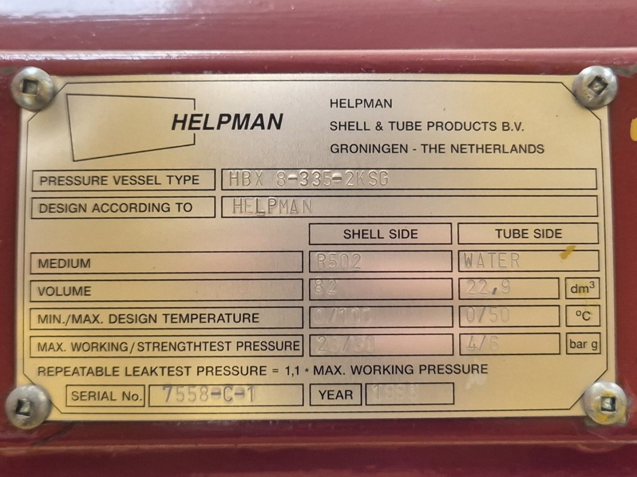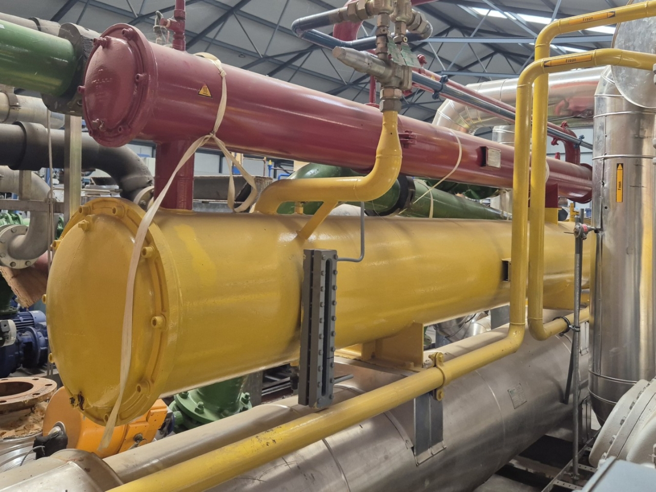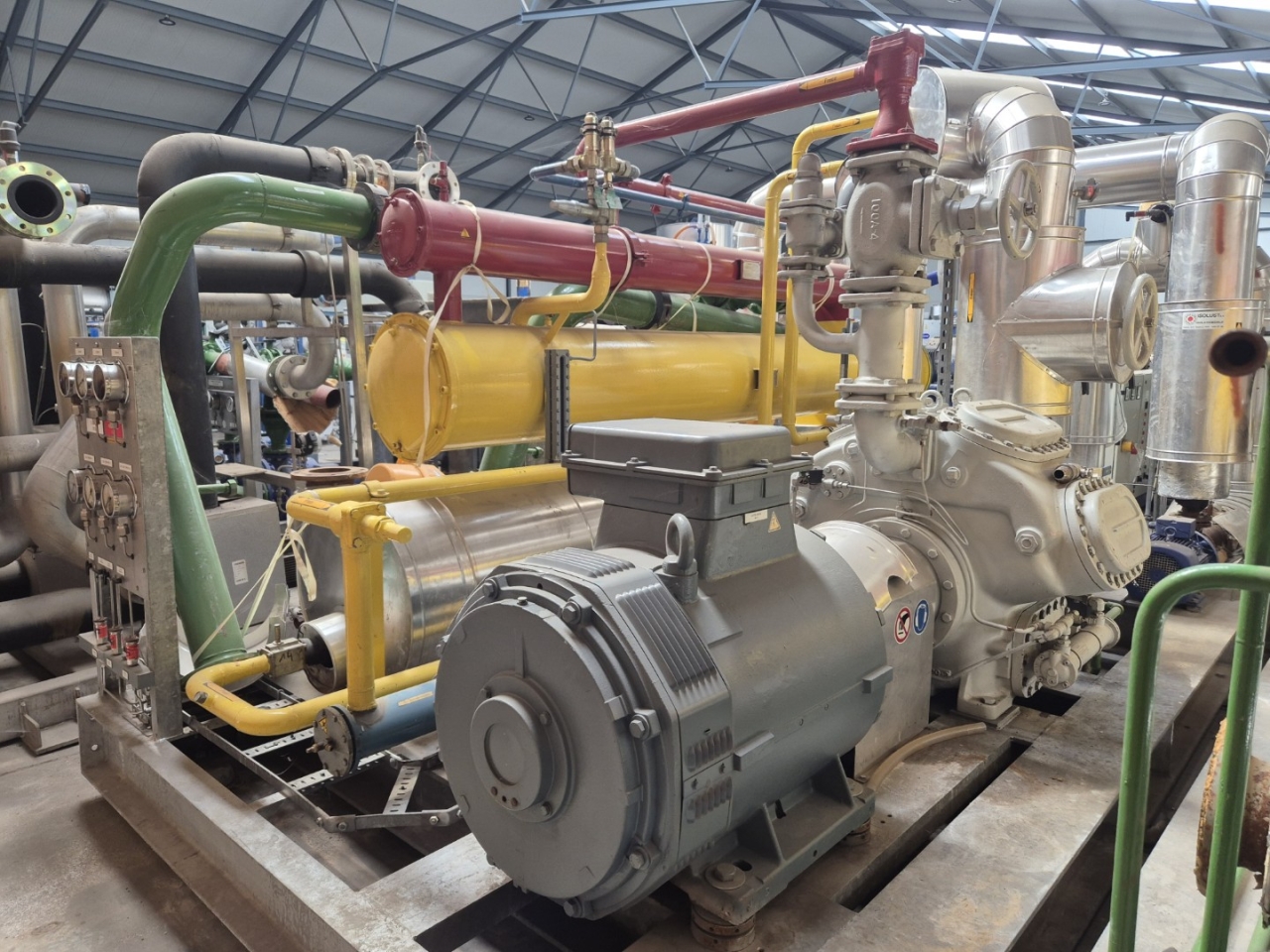 Het tweede deel is ook compleet met een Mycom F8WB zuigercompressor, een Schorch KN7315M-CB01G-Z elektromotor - 50 Hz - 132 kW - 985 RPM, een Helpman HBX 16-335-2KSG condensor, een Helpman VKS 16-350-T-3PASS verdamper, een Helpman HBX 8-335-2KSG oververhitter, een KSB ETABLOC GN 50-125 waterpomp, een KSB ETB 065-050-125-GG waterpomp, manometers en een vloeistofleidingfilterdroger.