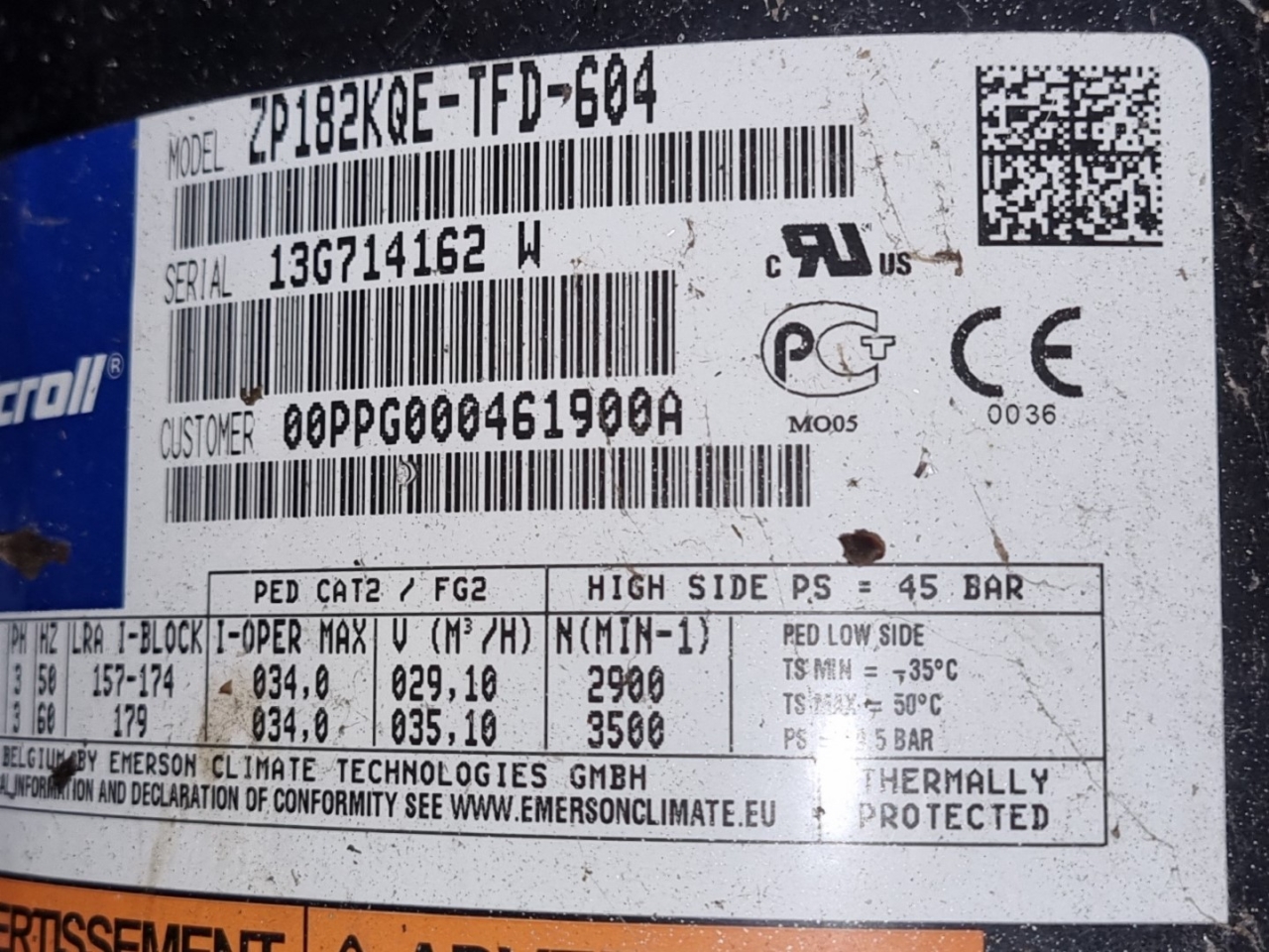 | Compressor(s) type & model | 3x Copeland ZP182KQE-TFD-604 |