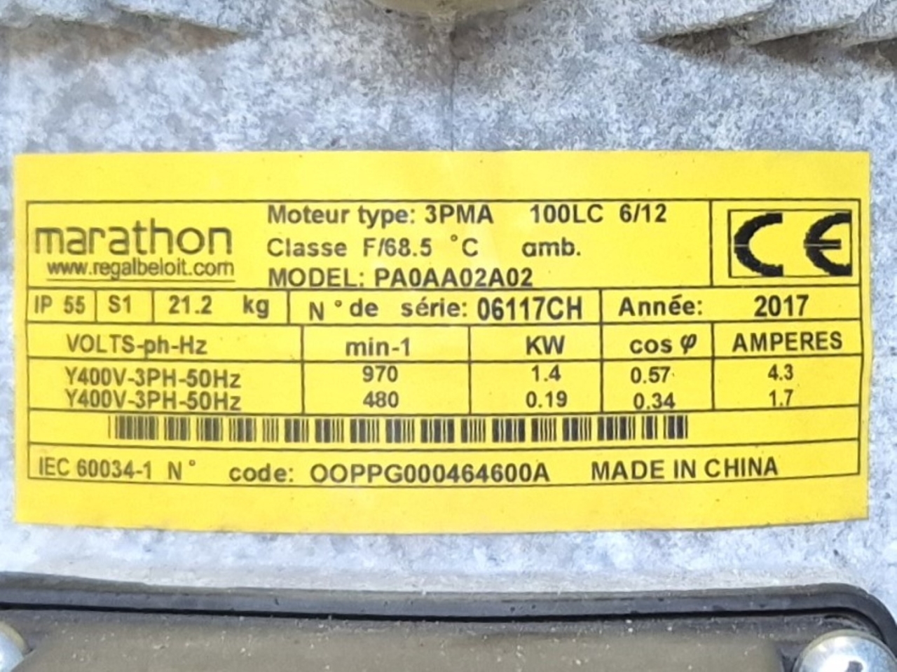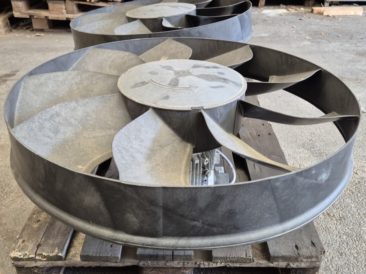 Used Carrier 3PMA fans with the following specifications: 50 Hz - 1,4/0,19 kW - 970/480 RPM - diameter 800 mm.