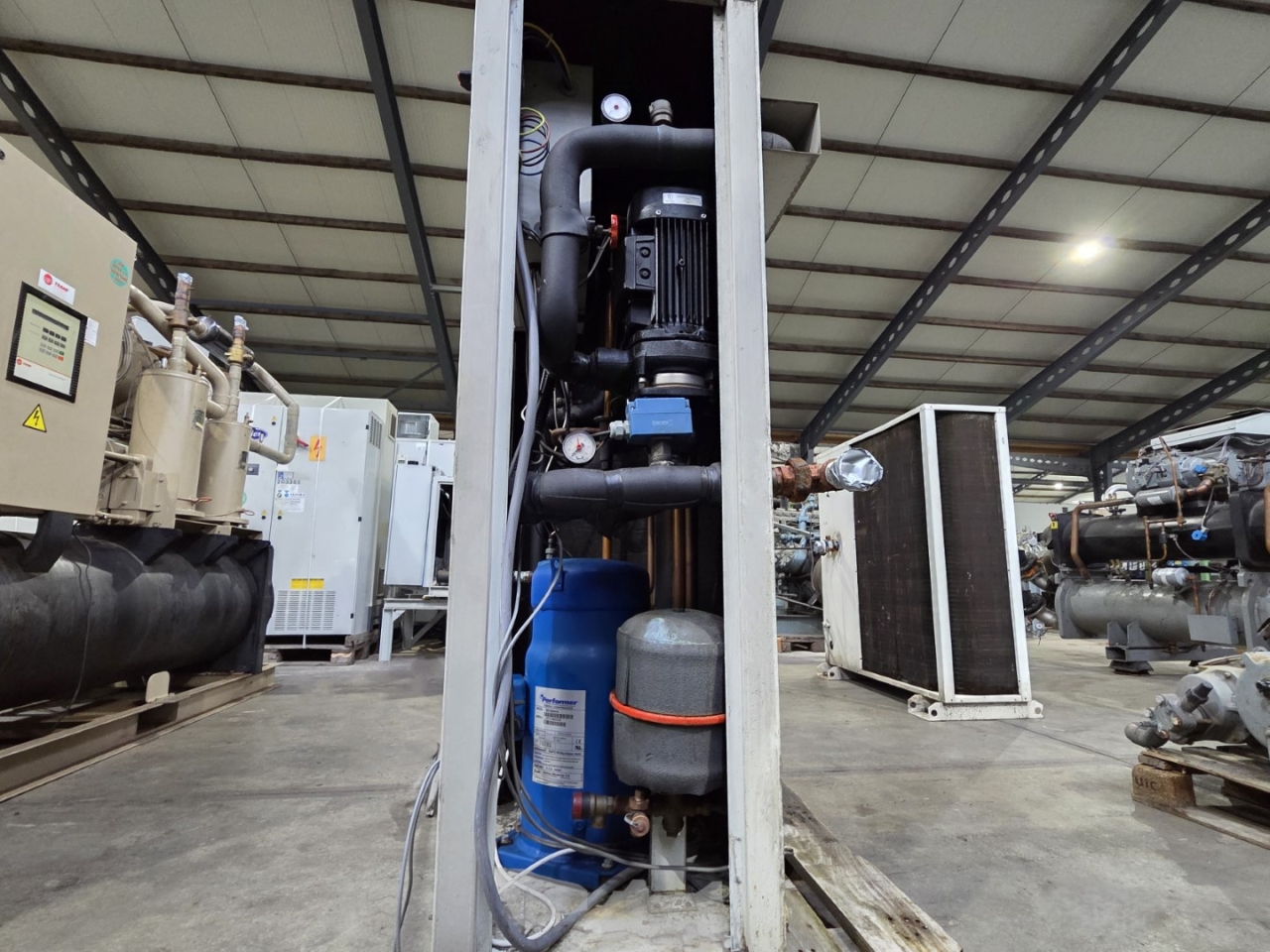 *All components of this used chiller will be tested on adequate performance, leak free condition (condensing blocks, compressors, fans, control panel, and so forth). Choosing HOSBV means buying with warranty. We perform a industrial cleaning. if requested we can arrange your shipment.