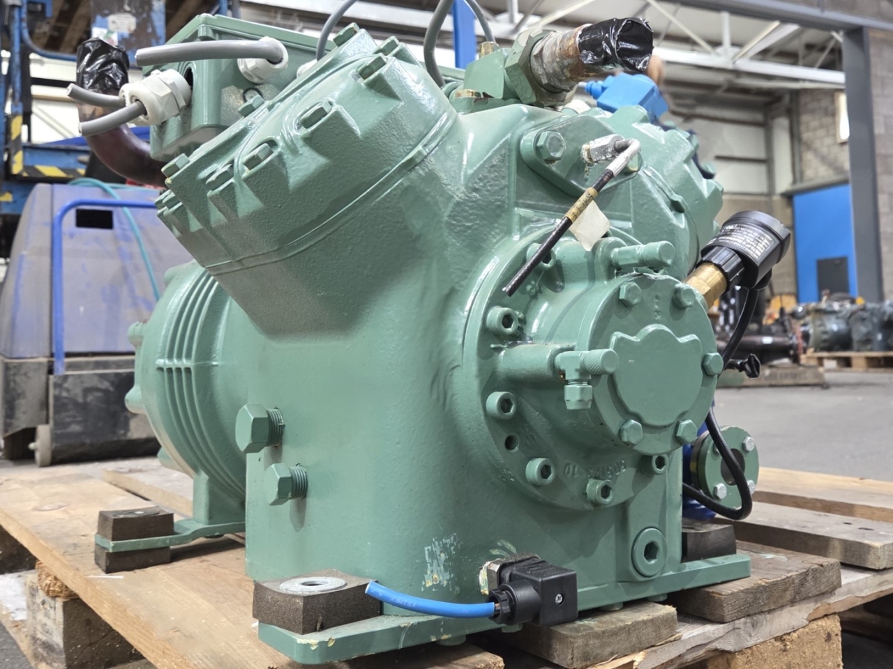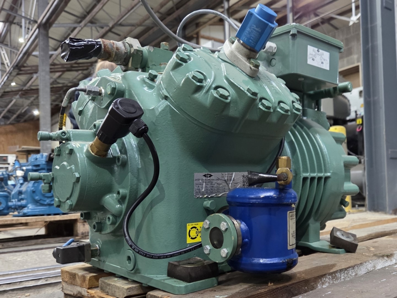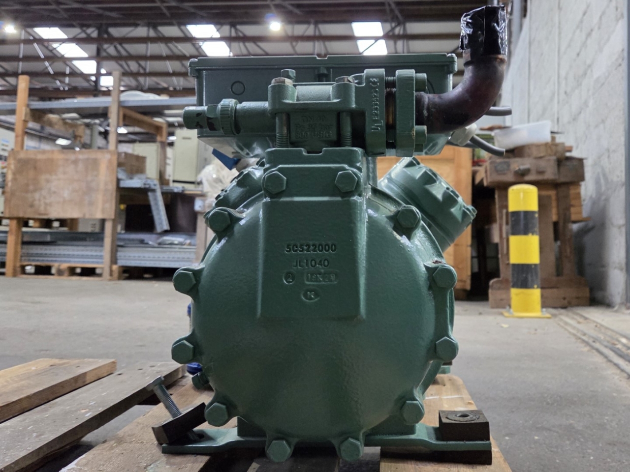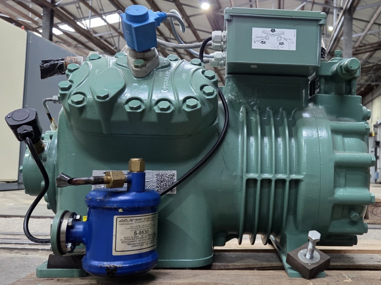 Used Bitzer 4JE-15Y-40P semi-hermetic reciprocating compressor on Freon. Complete with a Henry Technologies S-9530 oil level system AC&R and a sight glass. The compressor has a displacement of 63,5 m³/h at 50 Hz & 76,6 m³/h at 60 Hz.