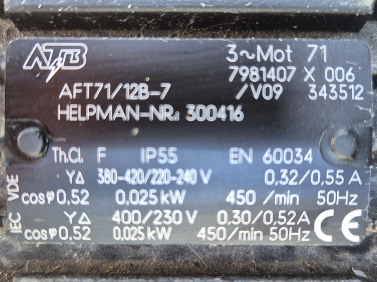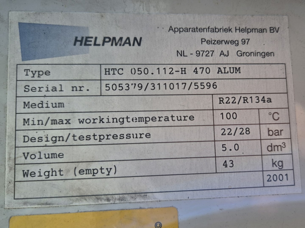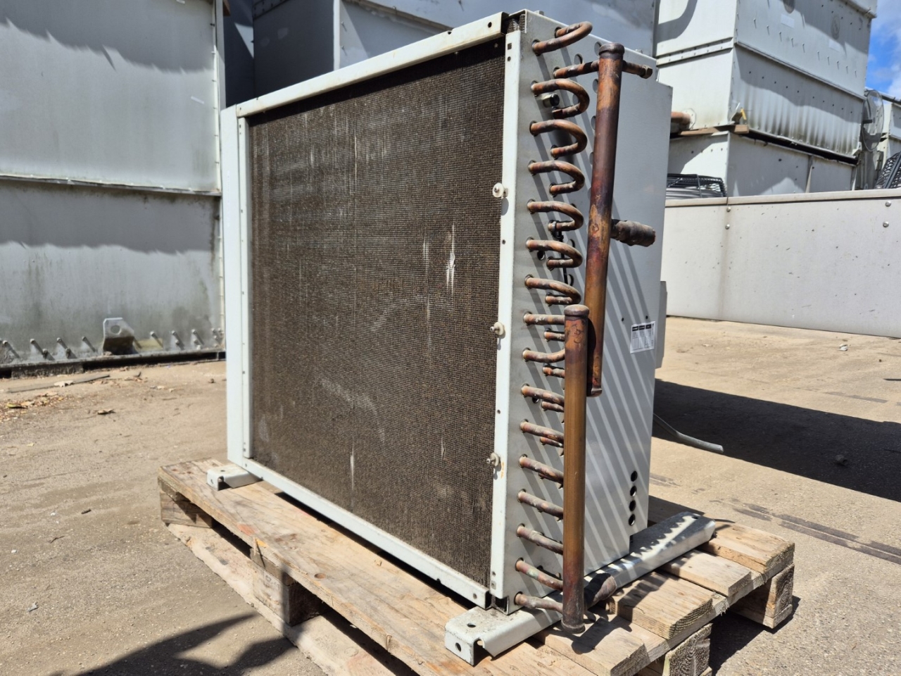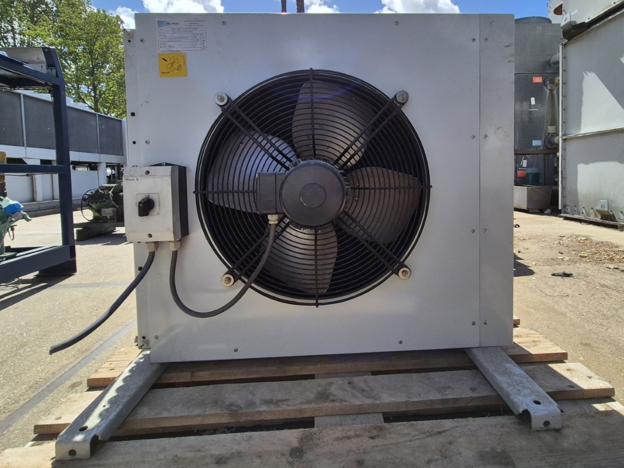 Used Helpman HTC 050.112-H air-cooled condenser on Freon. Complete with 1 ATB AFT71/12B-7 fan - 50 Hz - 0,025 kW - 450 RPM - diameter 508 mm and a total airflow of 2.530 m³/h.