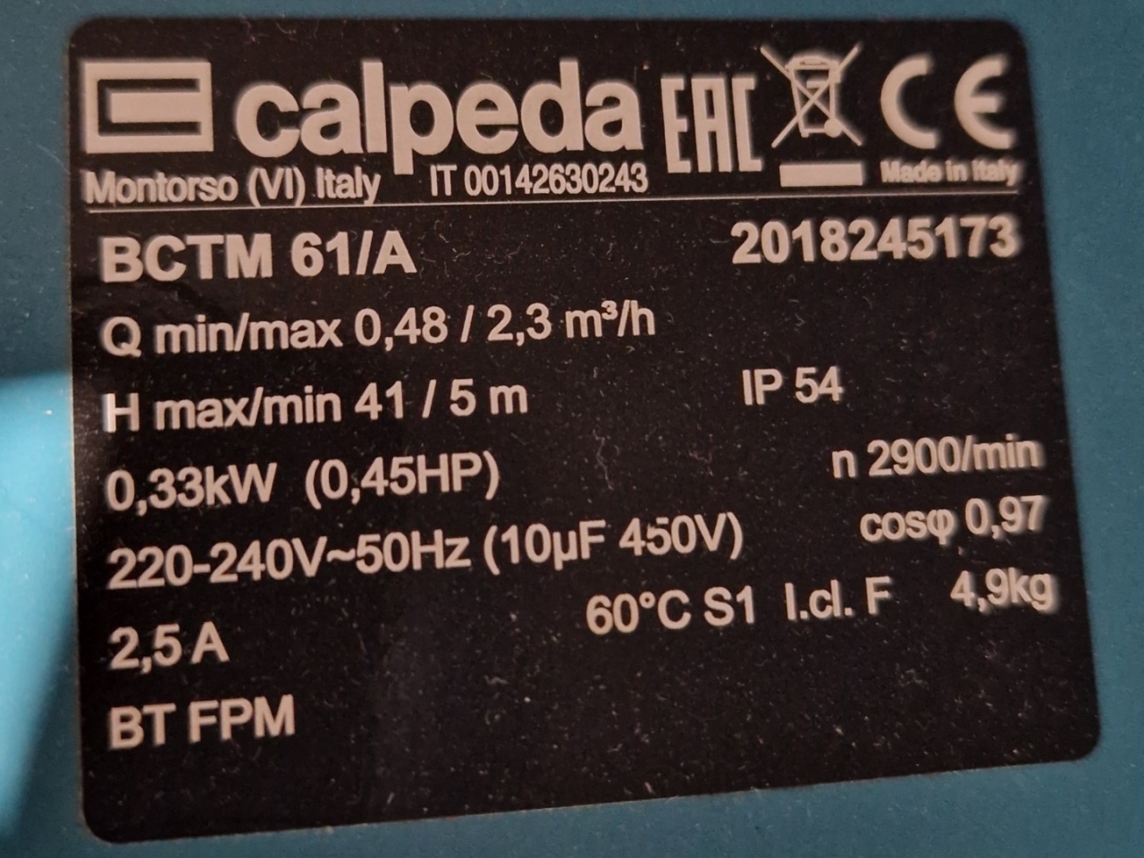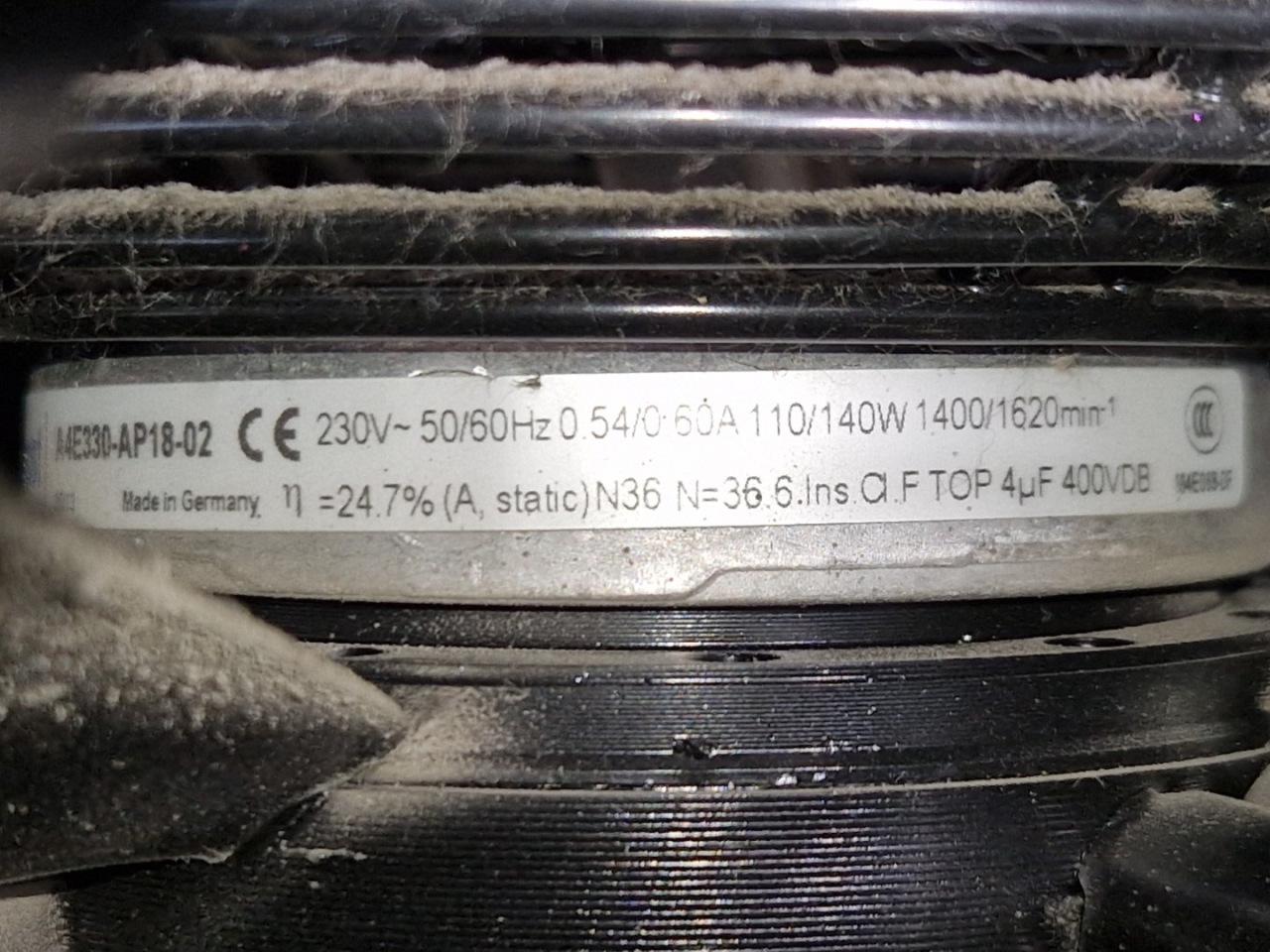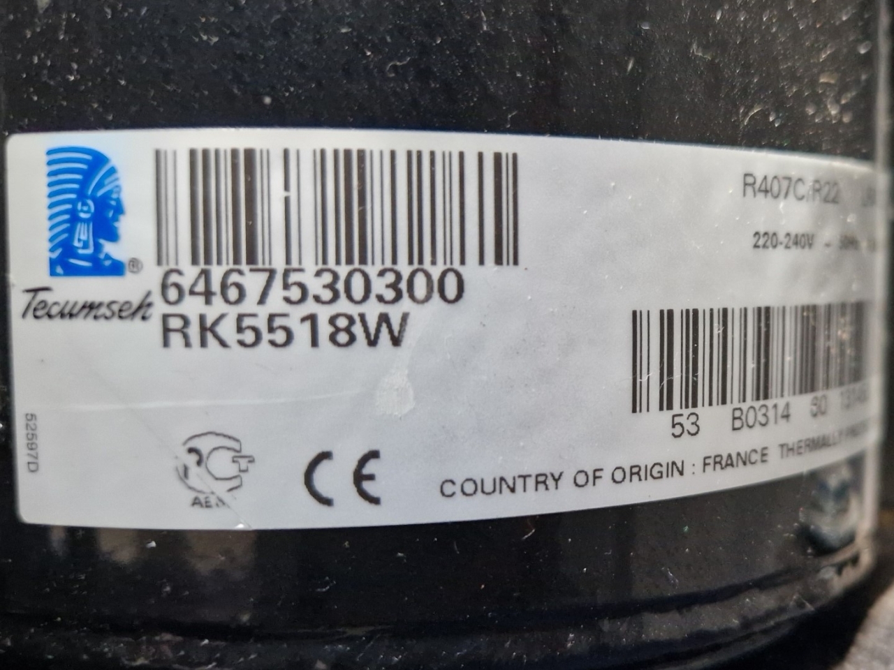 Used MTA TAE EVO M10 air-cooled chiller on R407C. Complete with a Tecumseh RK5518W hermetic compressor, condenser with 1 EBM-Papst A4E330-AP18-02 fan - 50/60 Hz - 0,11/0,14 kW - 1400/1620 RPM - diameter 330 mm, finned coil exchanger in a water storage tank as evaporator, Calpeda BCTM 61/A water pump and a control cabinet with a Dixell RX60CX controller.