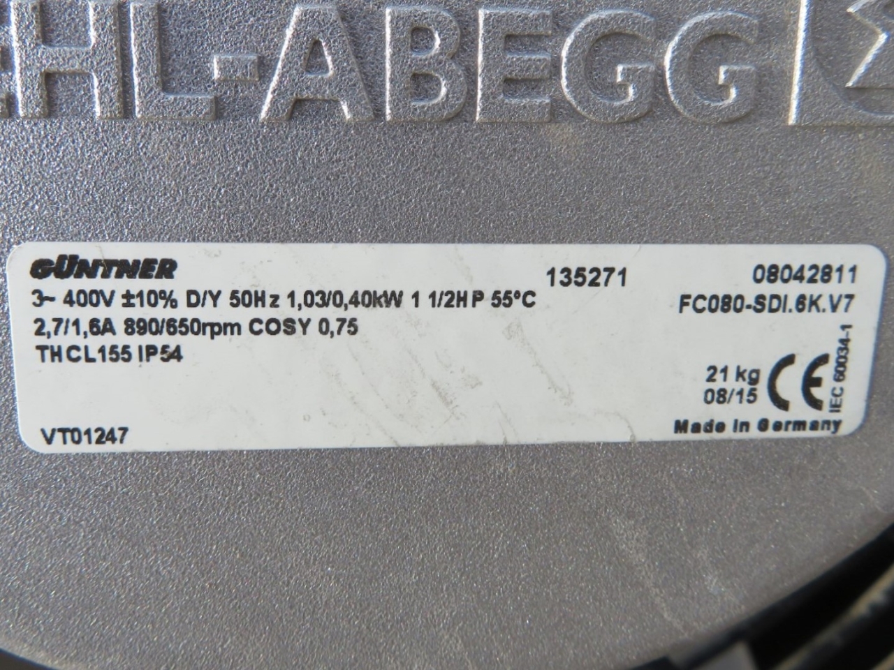 Used Güntner S-AGHN 080.2E/27-END/20P.E NH3 evaporator with electric defrost. Complete with 2 Ziehl-Abegg FC080-SDI.6K.V7 fans - 50 Hz - 1,03/0,40 kW - 890/650 RPM - diameter 800 mm and a total airflow of 37.040 m³/h.