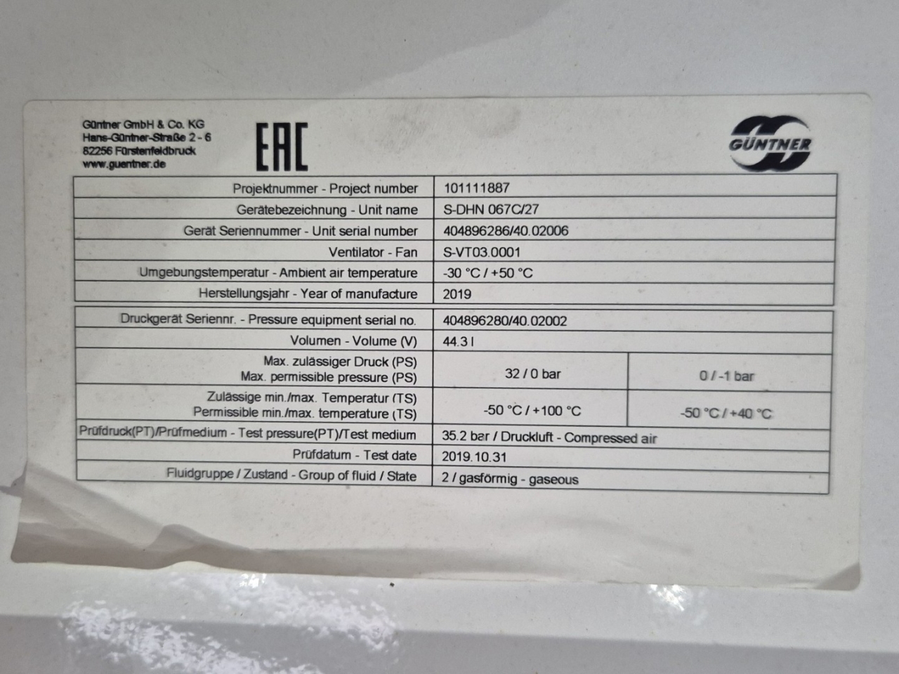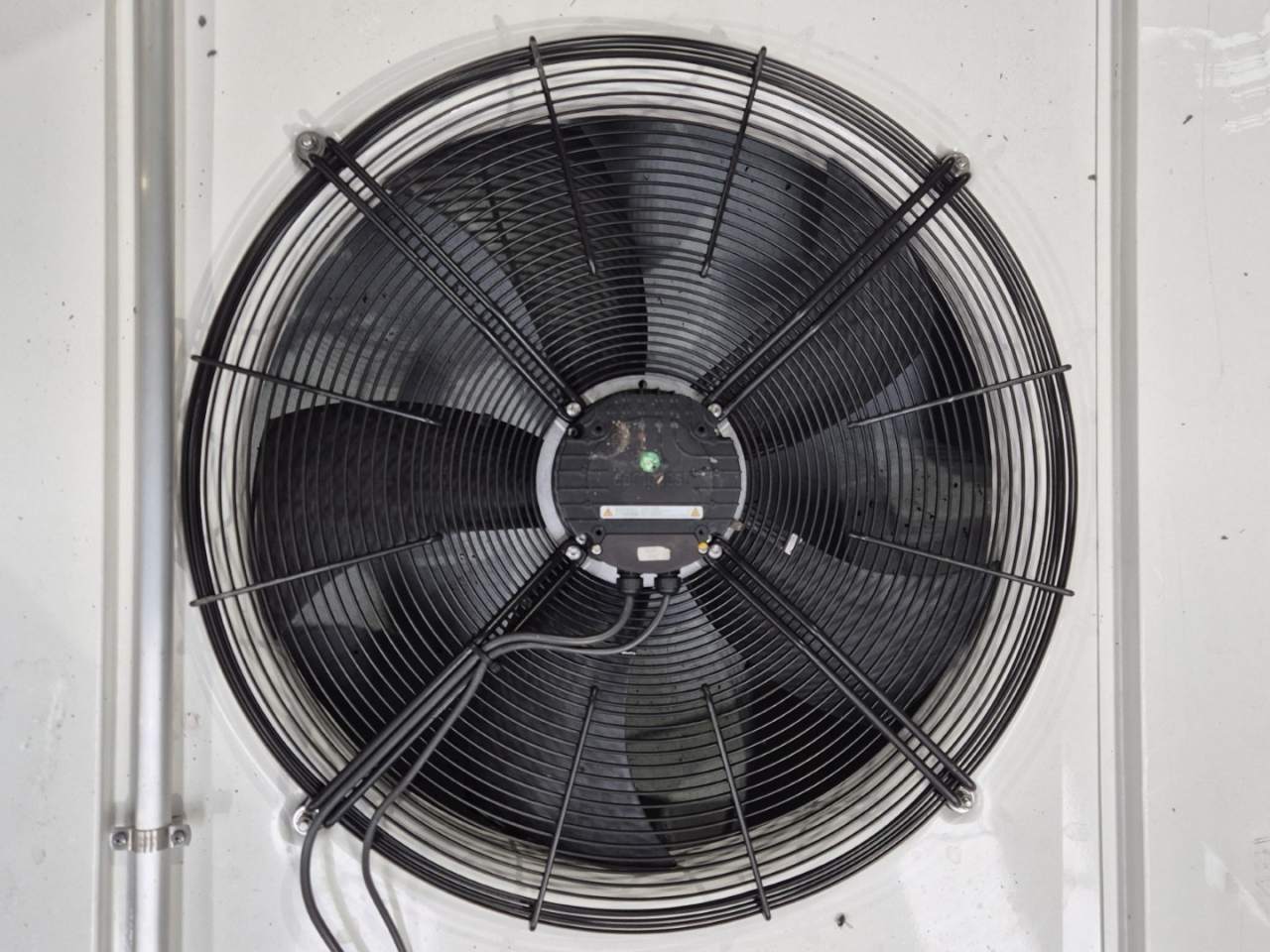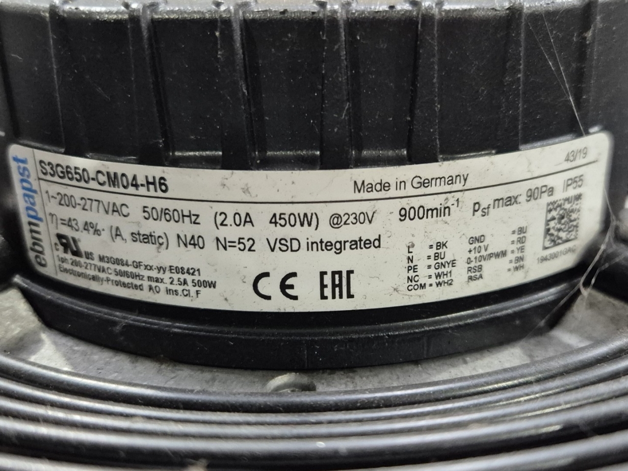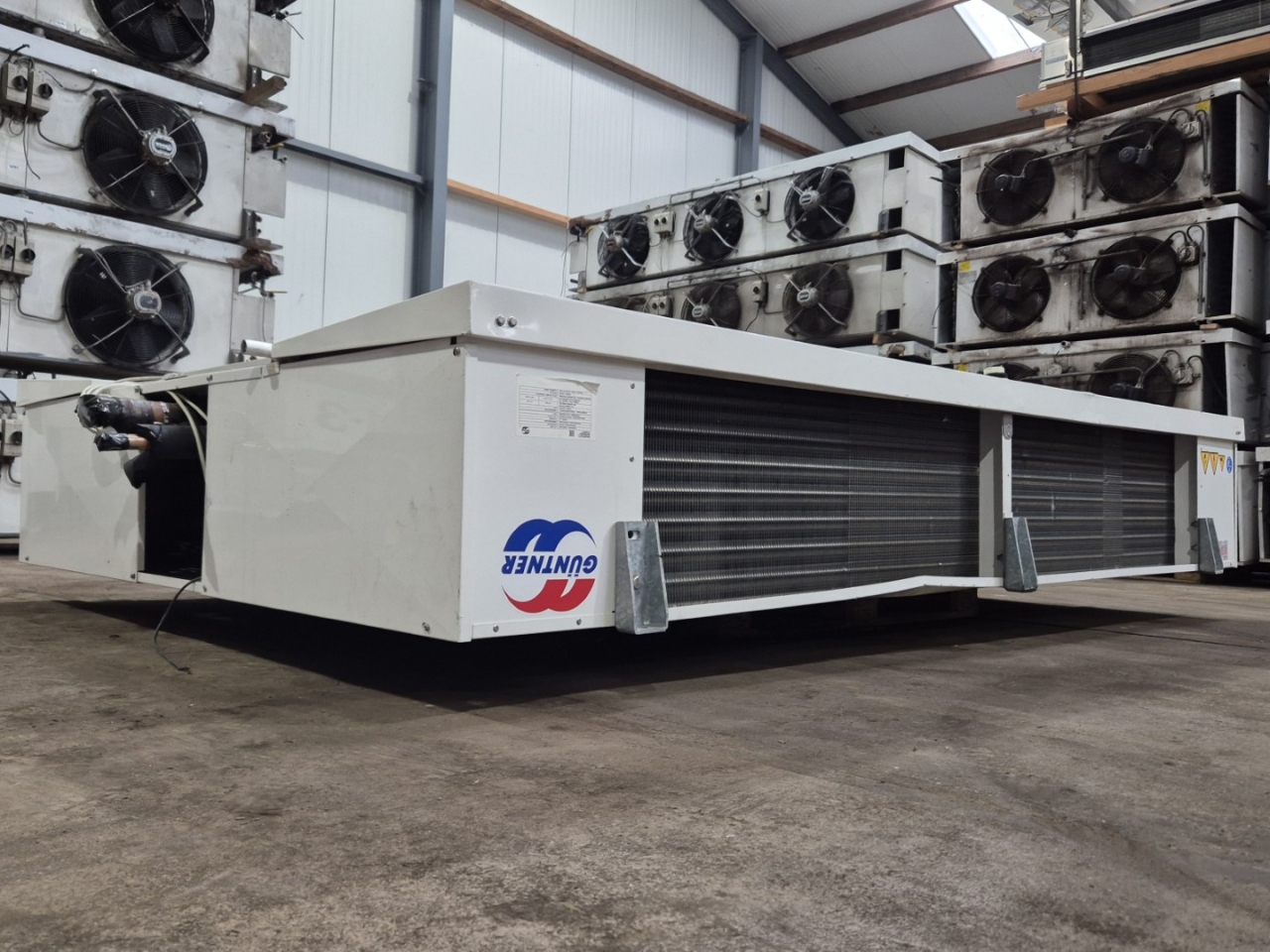 Used Güntner S-DHN 067C/27 Freon dual discharge evaporator built in 2019. Complete with 2 EBM-Papst S3G650-CM04-H6 fans - 50/60 Hz - 0,45 kW - 900 RPM - diameter 650 mm and a total airflow of 16.940 m³/h.