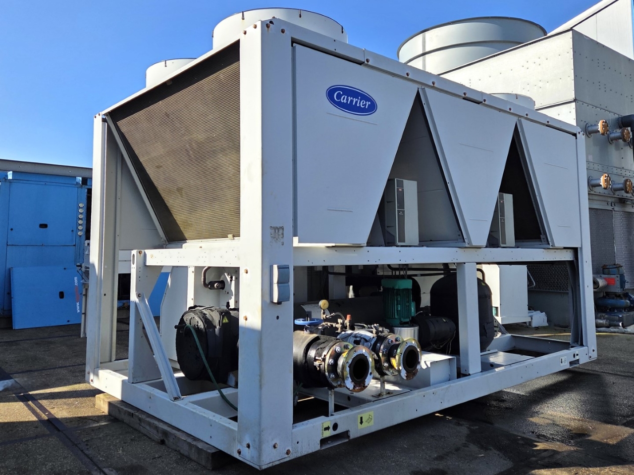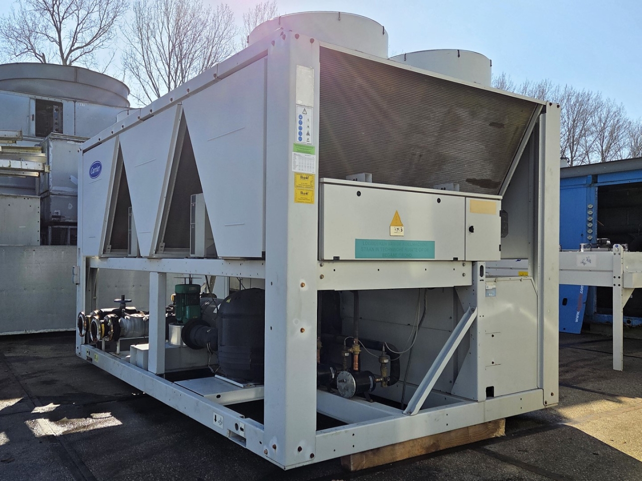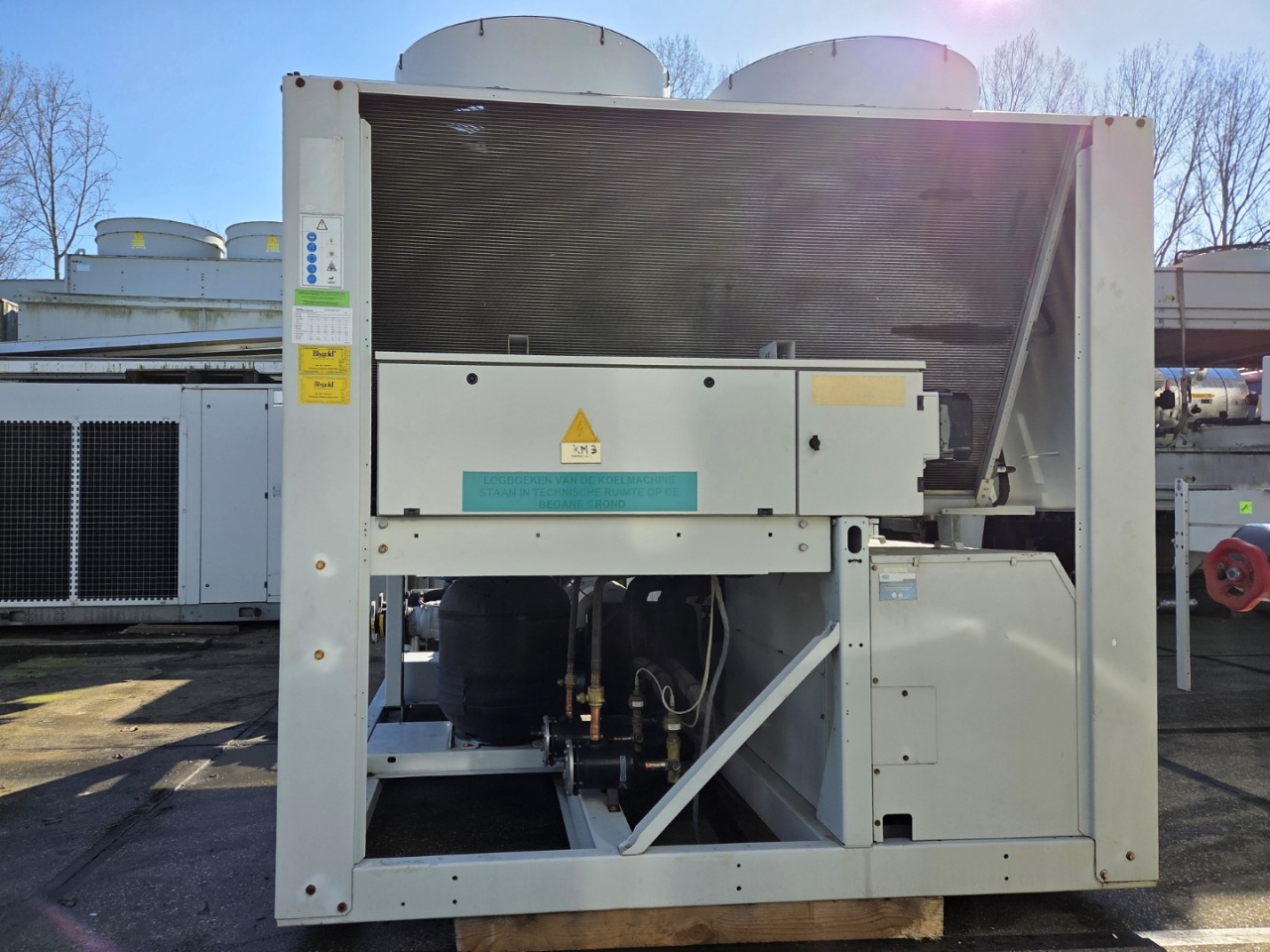 *All components of this used chiller will be tested on good working, leak free condition (condensing blocks), compressors, fans, control panel, etcetera). Choosing HOSBV means buying with warranty. We perform a industrial cleaning and rust spots will be covered. Also, we can arrange your shipment.