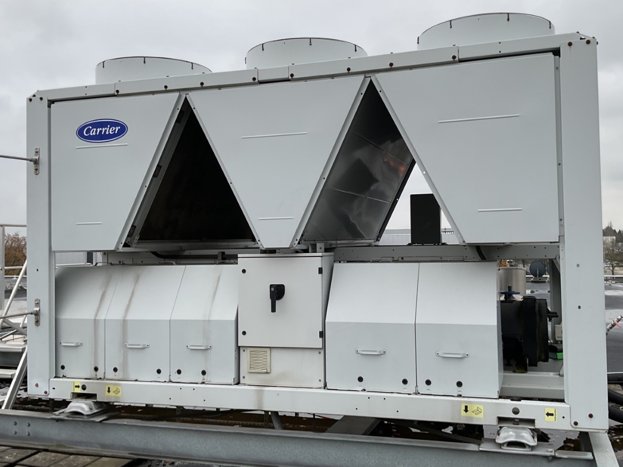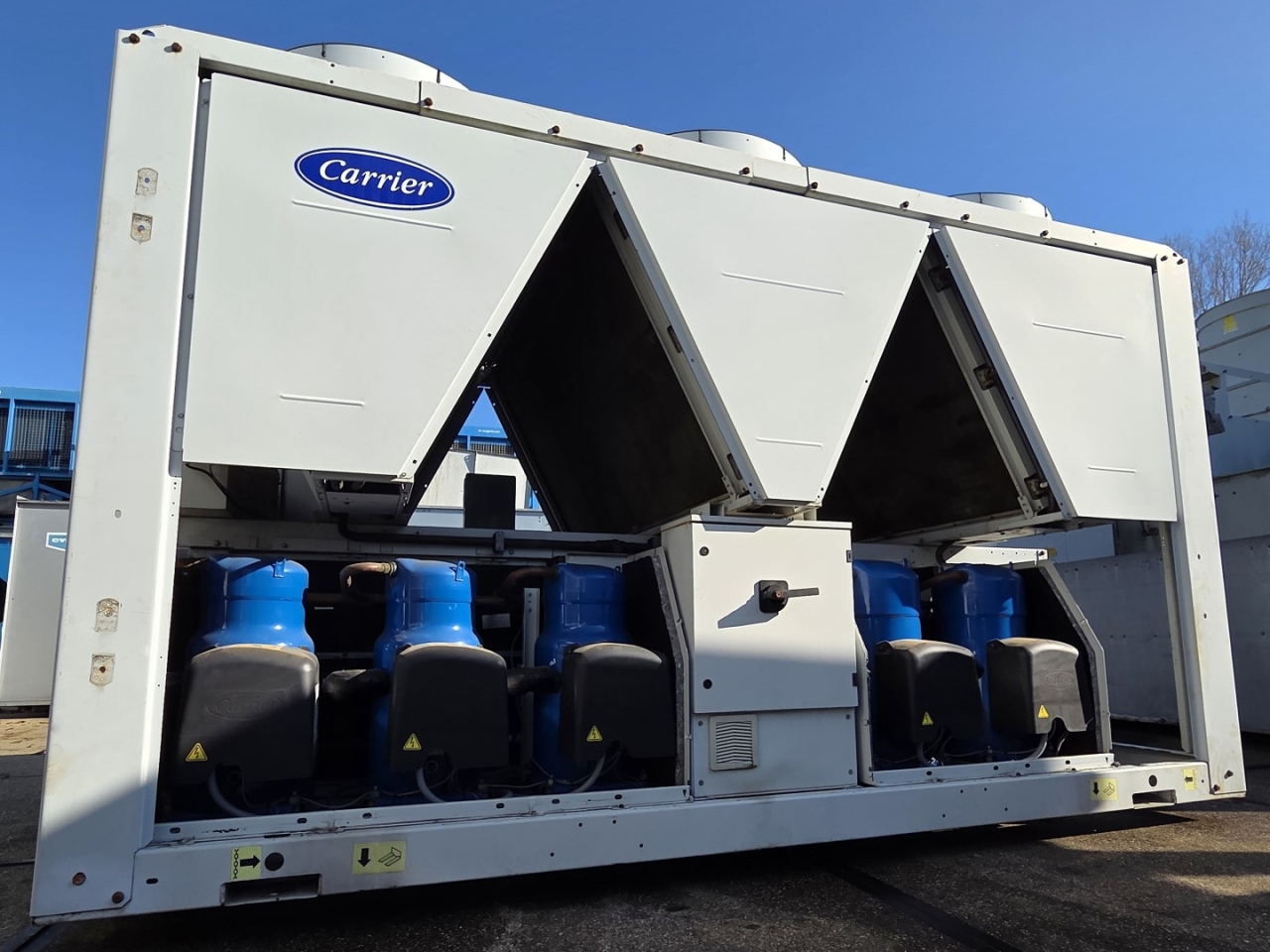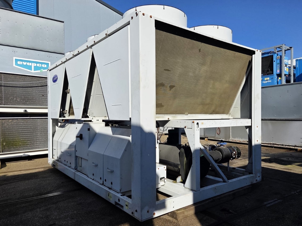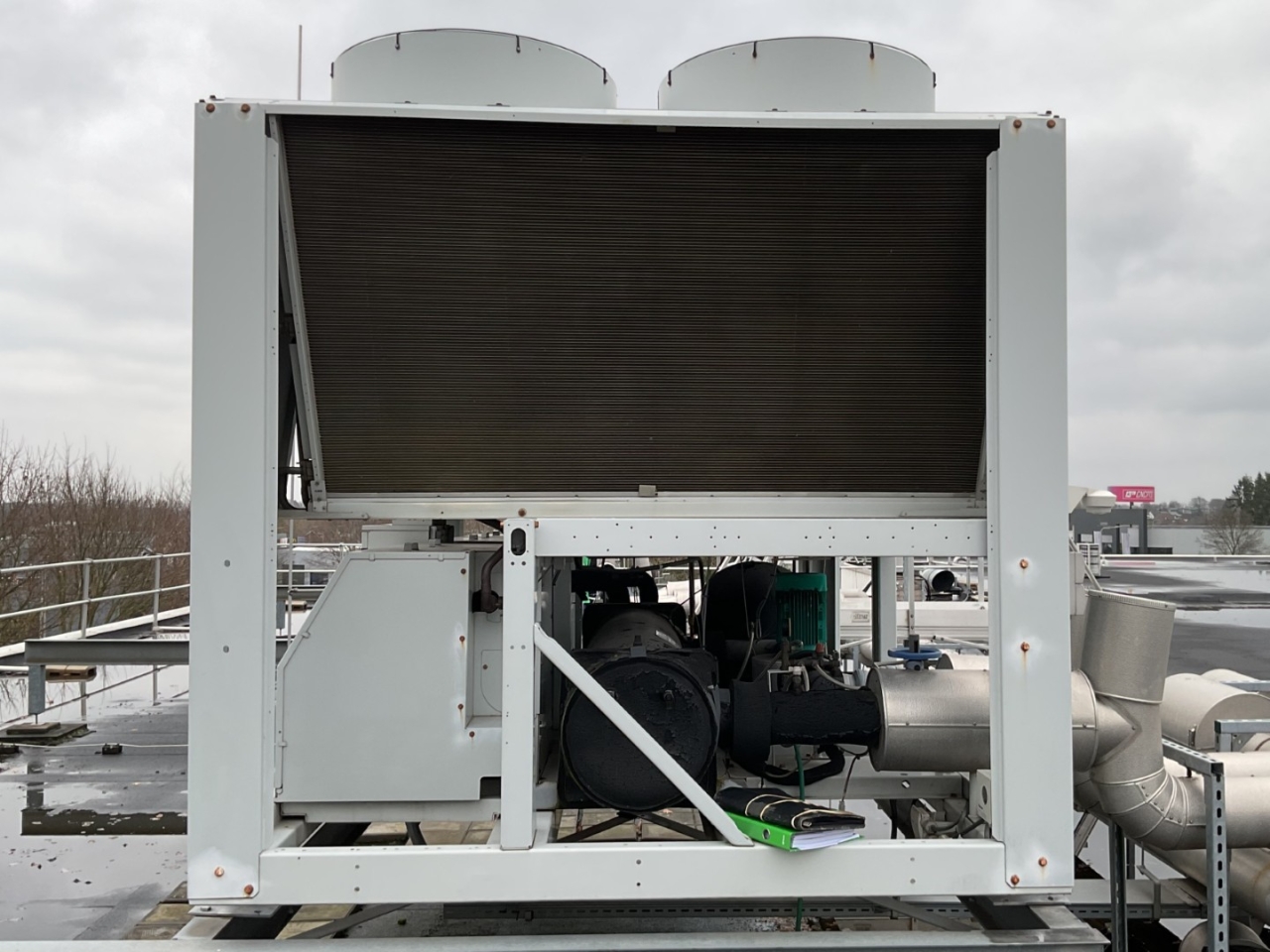 *All components of this used chiller will be tested on good working, leak free condition (condensing blocks), compressors, fans, control panel, etcetera). Choosing HOSBV means buying with warranty. We perform a industrial cleaning and rust spots will be covered. Also, we can arrange your shipment.