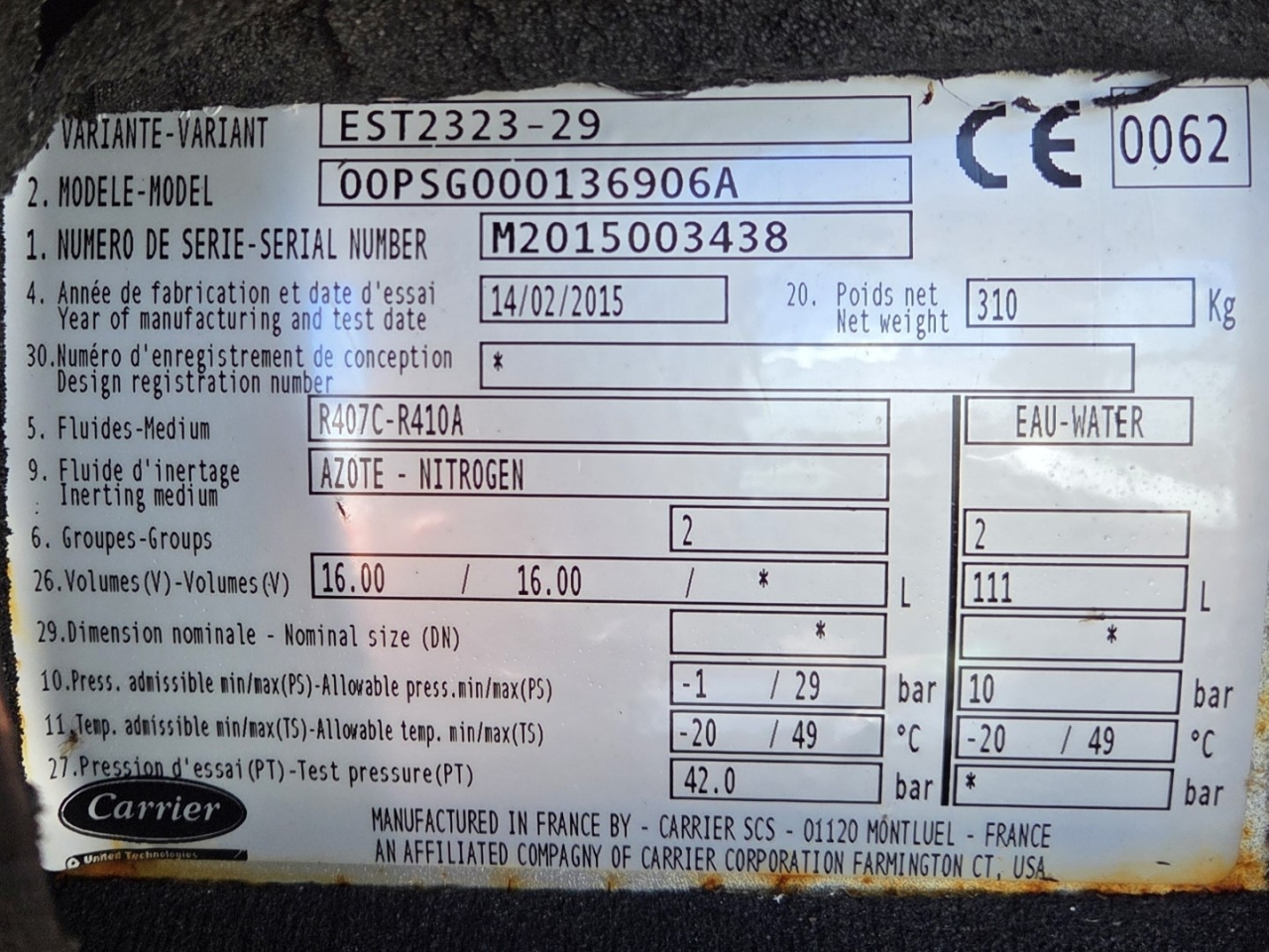 | Carrier 30 RB 0302 - Specifications |