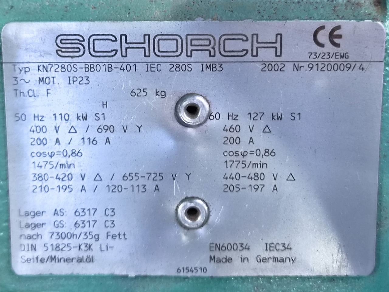 | Electromotor Specs | 50 Hz - 110 kW - 1475 RPM |