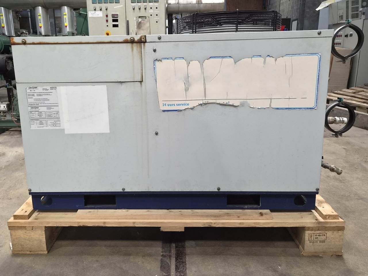 *All components of this used chiller will be tested on adequate performance, leak free condition (condensing blocks, compressors, fans, control panel and so forth). Choosing HOSBV means buying with warranty. We perform a industrial cleaning. if requested we can arrange your shipment.
