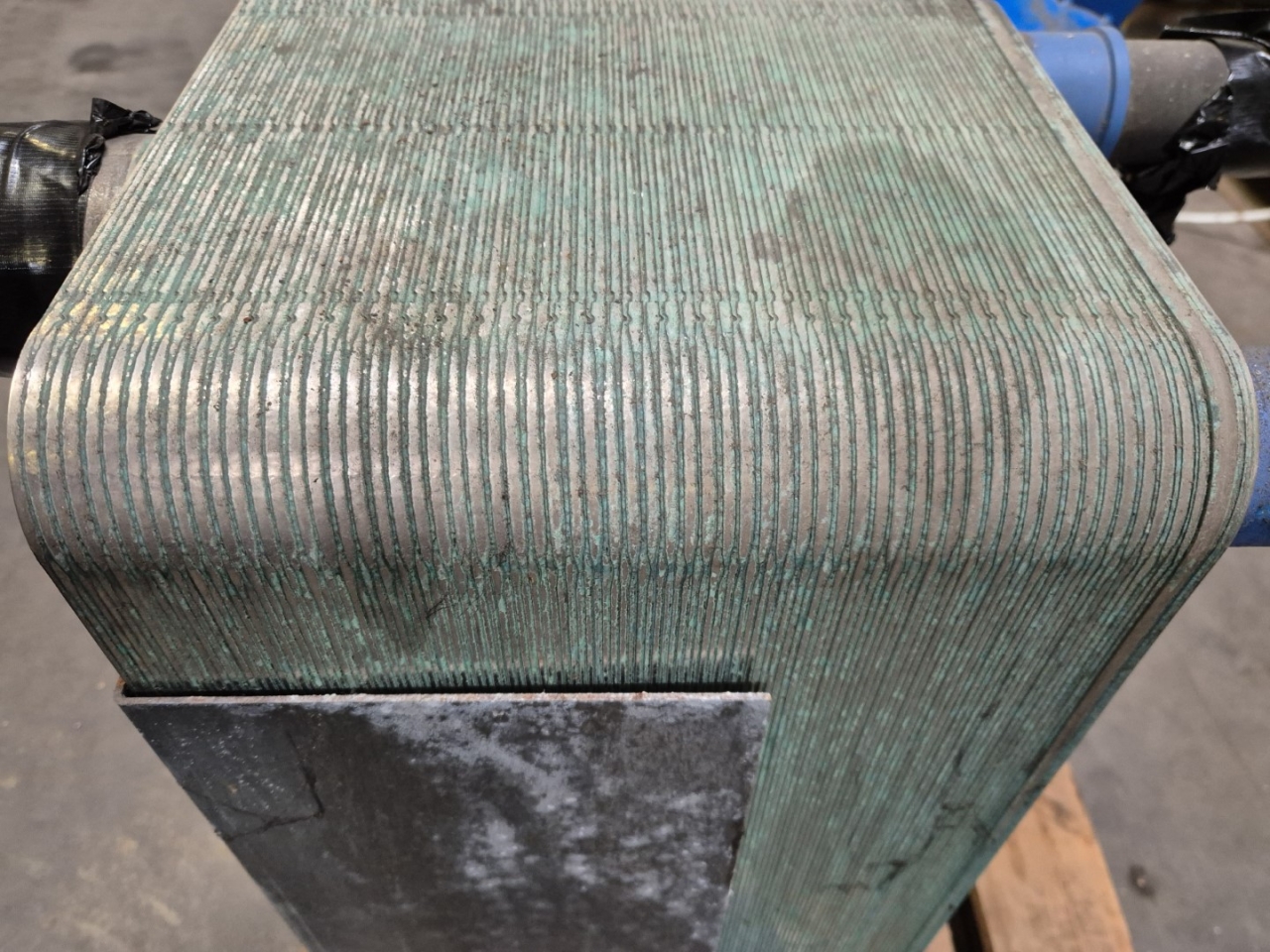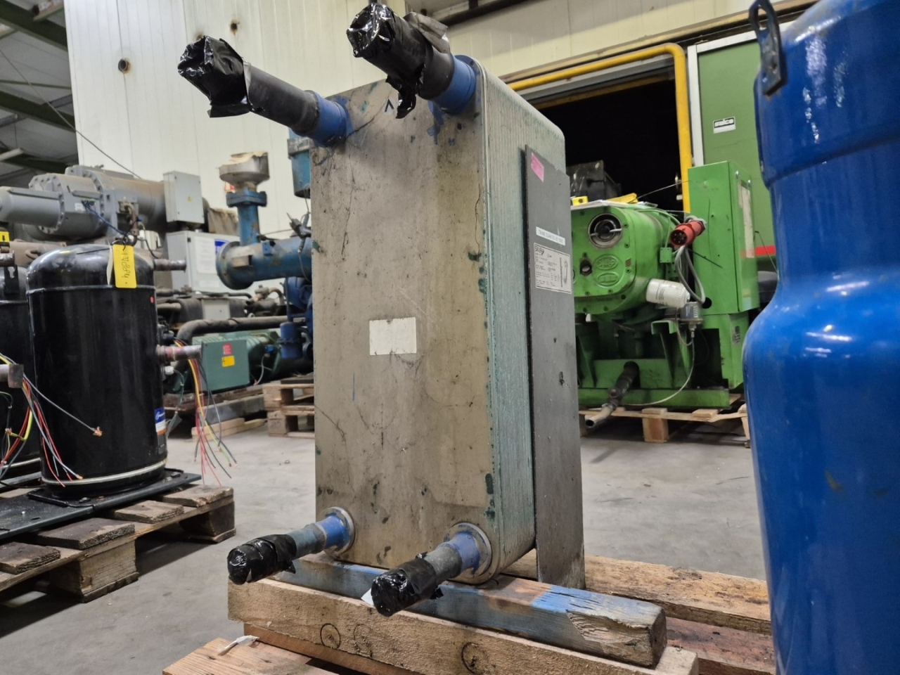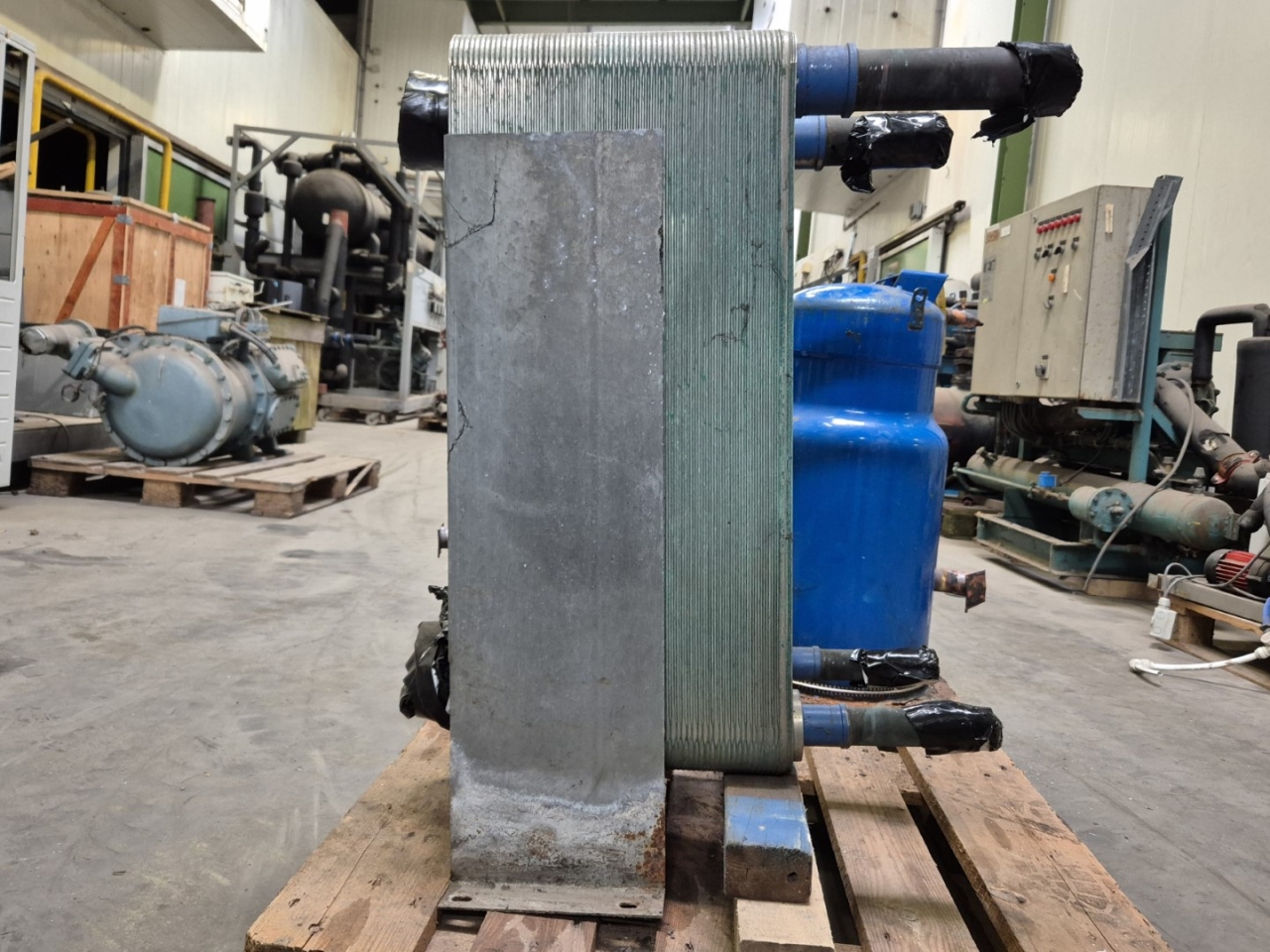 Gebrauchter SWEP DV58x122/1P-SC-S gelöteter Wärmetauscher für Freon/Glykol mit 122 Schichten. Blockgröße: 310x300x690 mm (LxBxH).