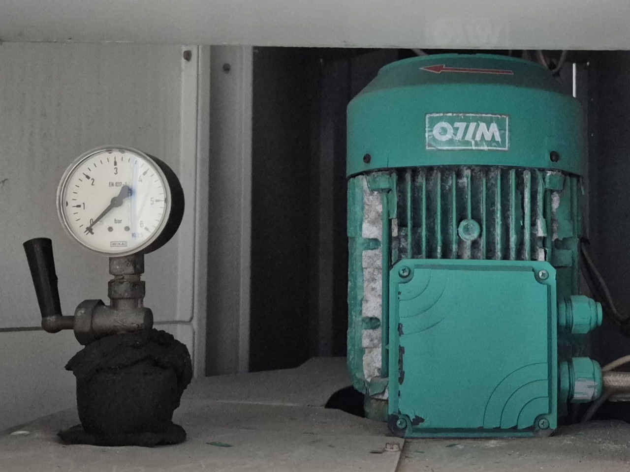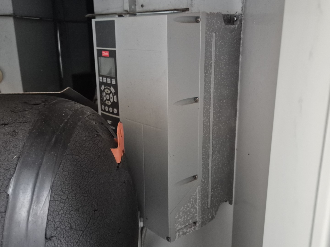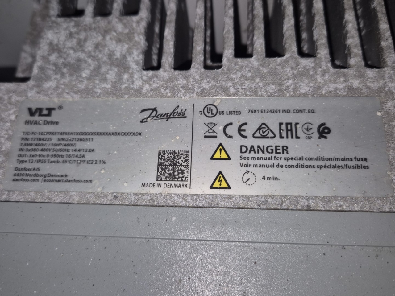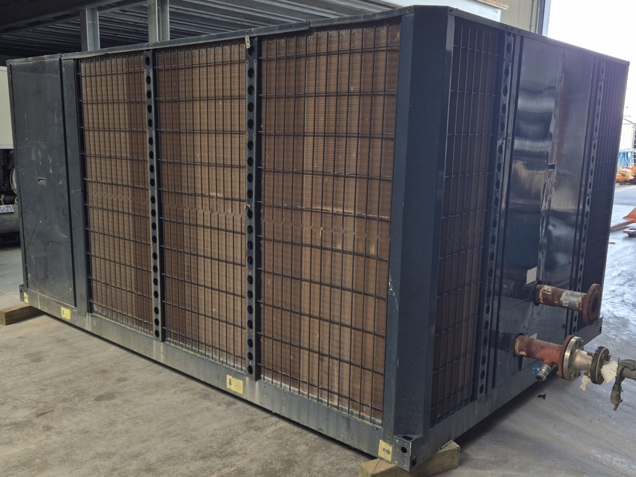 Gebrauchter luftgekühlter Kaltwassersatz Carrier 30 RA 240 mit R407C. Komplett mit 6 Performer SZ185W4PC-Scrollverdichtern, Kondensator mit 4 Lüftern, die einen Luftstrom von 75.268 m³/h erzeugen, gelötetem Wärmetauscher als Verdampfer, Wilo-Wasserpumpe, Ausdehnungsgefäß, Danfoss FC-102P7K5T4E55H1-Frequenzregler und einem Schaltschrank mit einem Carrier Pro-Dialog Plus-Controller.