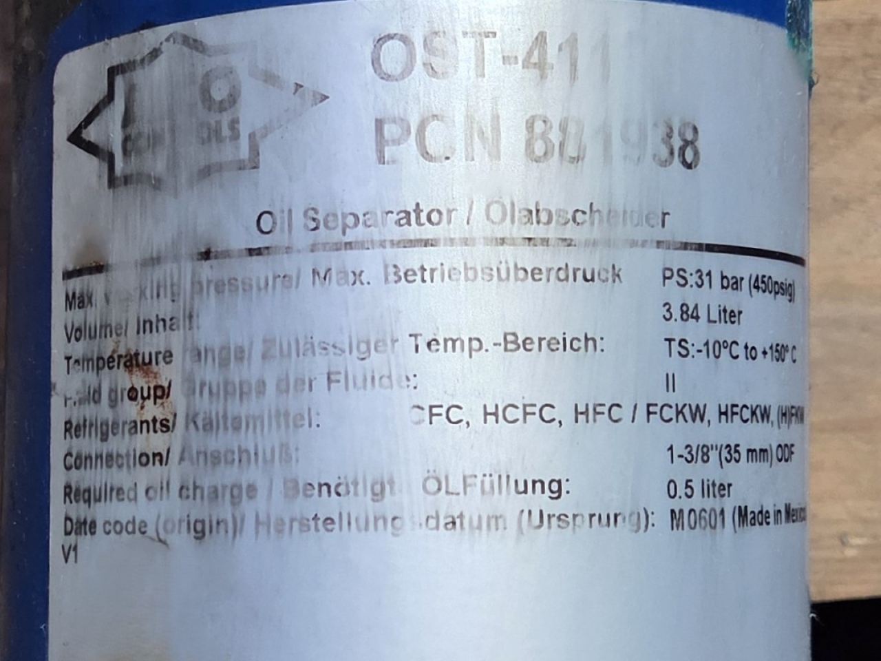 Gebrauchter Alco OST-411 Ölabscheider für Freon. Abmessungen: 620 x 150 x 140 mm (L x B x H).