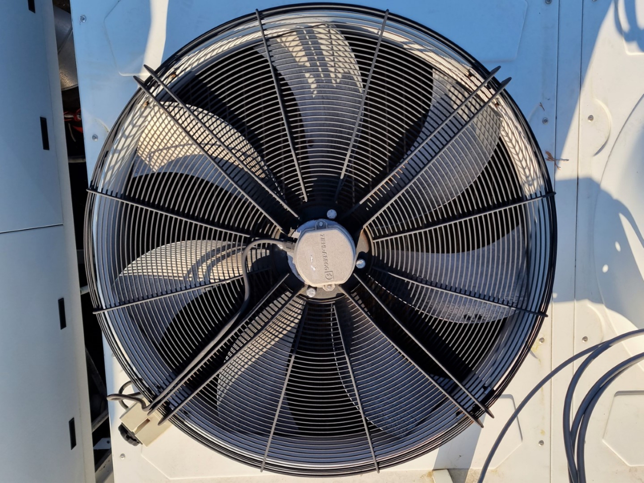 Used Güntner GVH 090.2A/2x3-E(D) air cooled condensor. Complete with 6 Ziehl-Abegg fans 50 Hz - 0,30/0,08 kW - 390/250 RPM - diameter 900 mm. Mentioned capacity at delta is 283 kW and capacity at star is 196 kW.