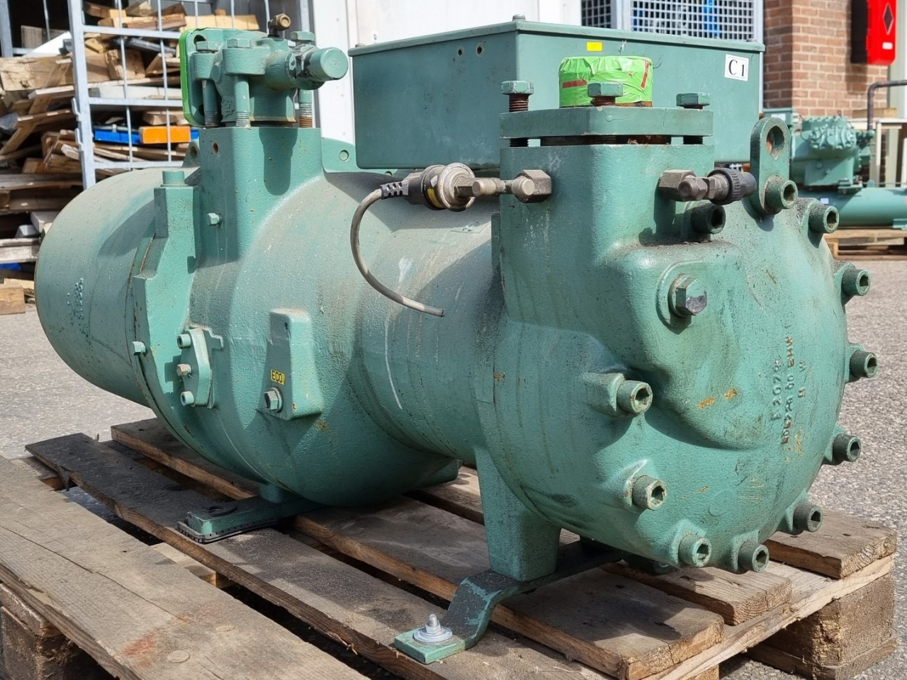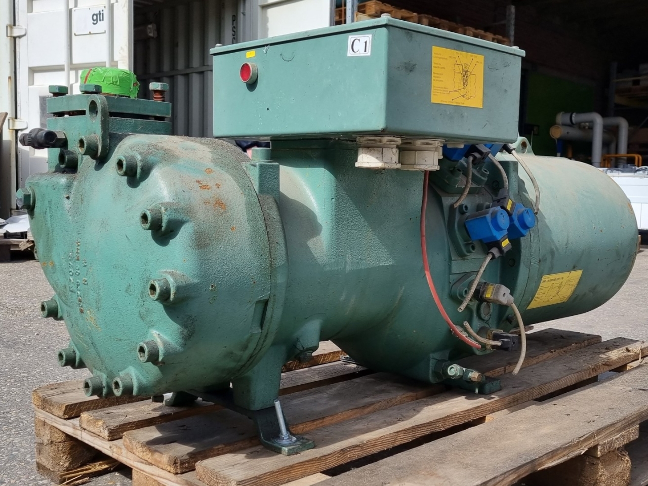 Used Bitzer CSH 7561-80Y compact screw compressor on Freon. Complete with selenoid valves and a sight glass. The compressor has a displacement of 227 m³/h. Capacity based on the use of Freon type: R134a.