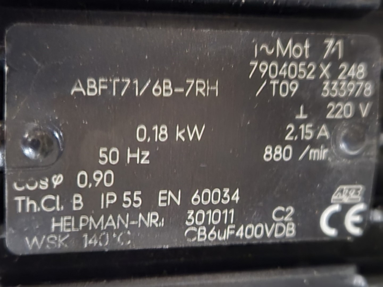 Used ATB ABFT71/6B-7RH fan with the following specifications: 50 Hz - 0,18 kW - 880 RPM - diameter 450 mm.