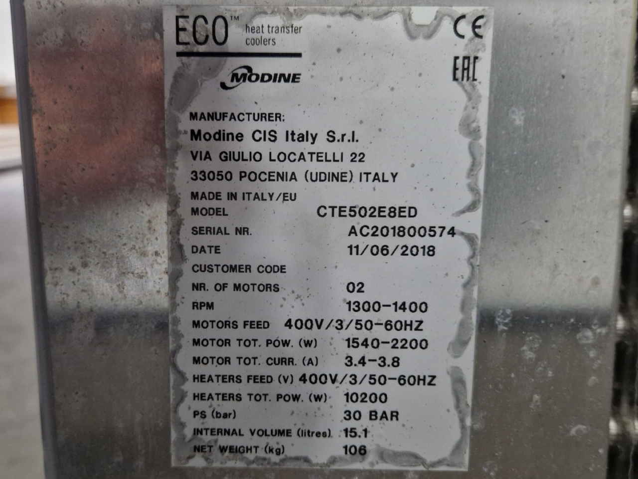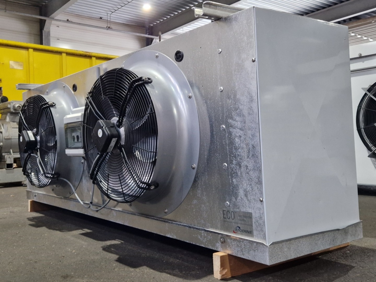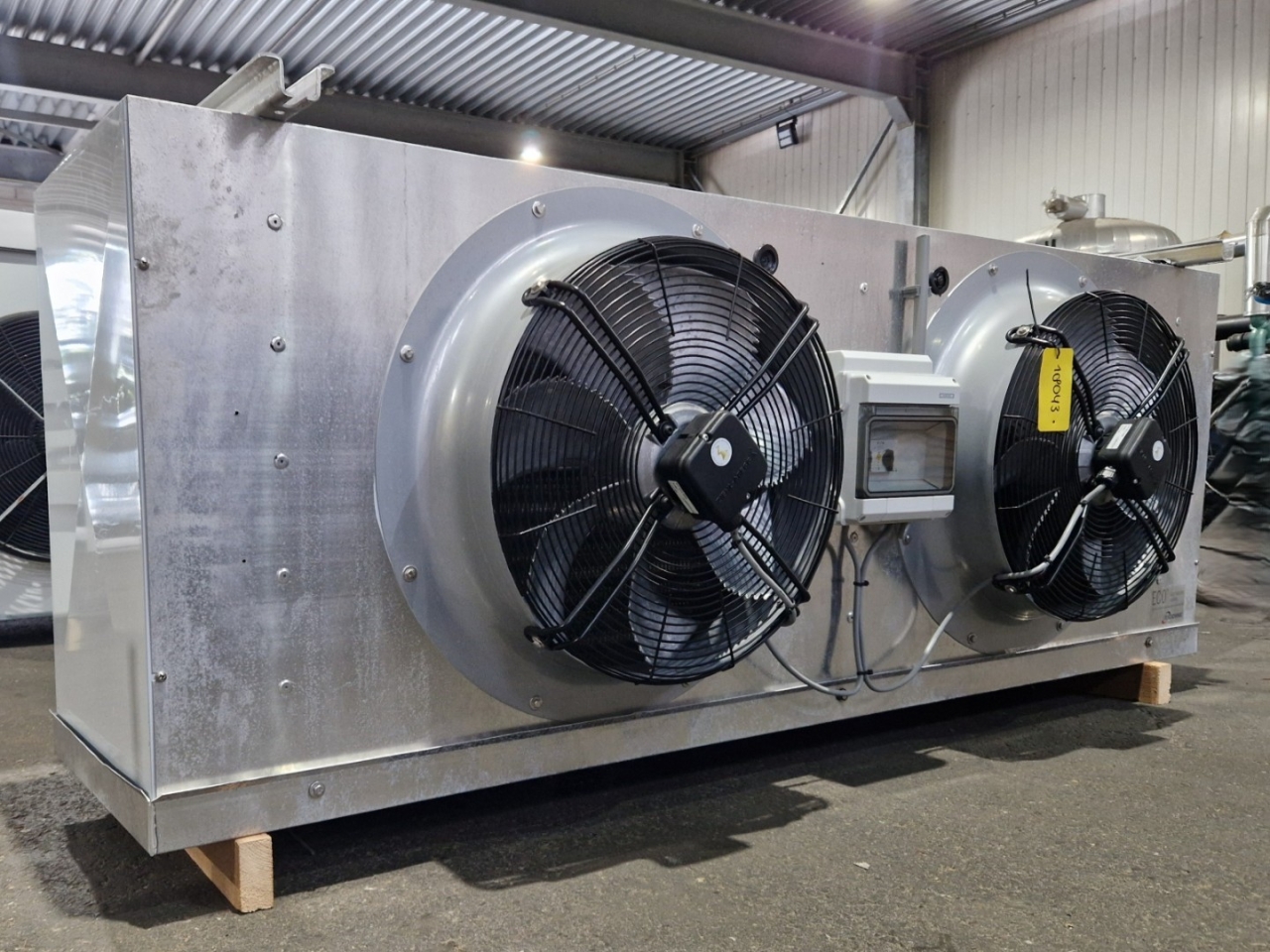 Used ECO CTE 502 E8ED Freon evaporator. Complete with 2 Ziehl-Abegg FN050-VDS.4I.V7P1 fans - 50/60 Hz - 0,77/0,49 kW - 1,1/0,60 kW - 1300/1025 RPM -1400/980 RPM - diameter 500 mm and a total airflow of 15.570 m³/h.