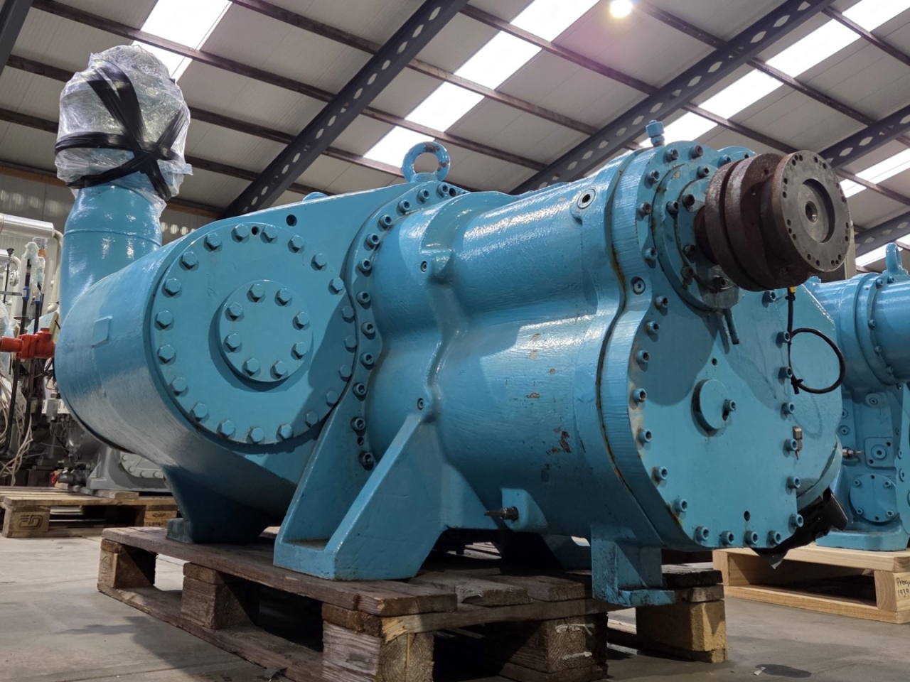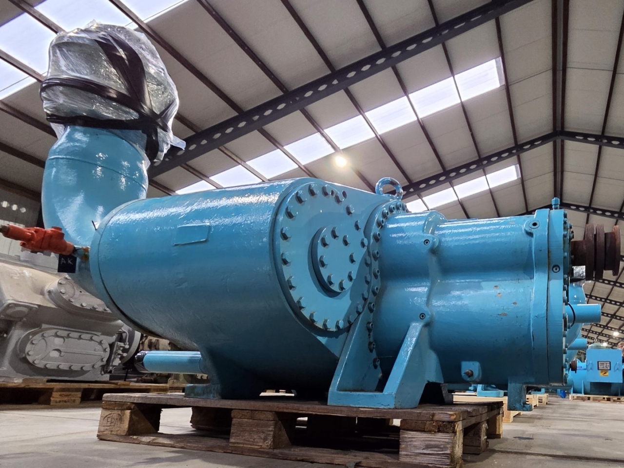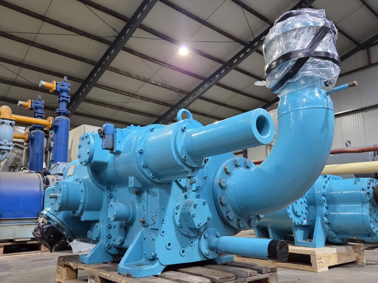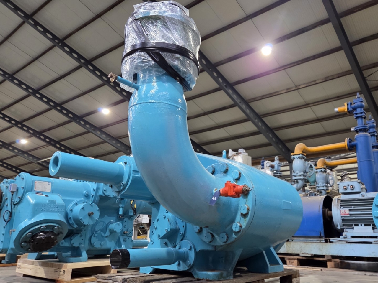 Used ABB Stal S89A-HP-E-V compressor skid on NH3 (Ammonia). The compressor has a displacement of 4639,7 m³/h. This compressor worked originally with the following electric motor from the brand Weg: 201076