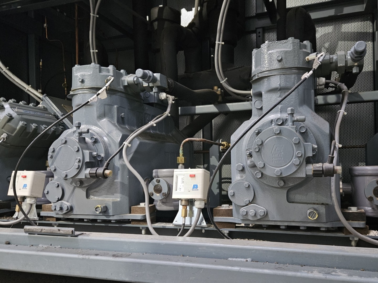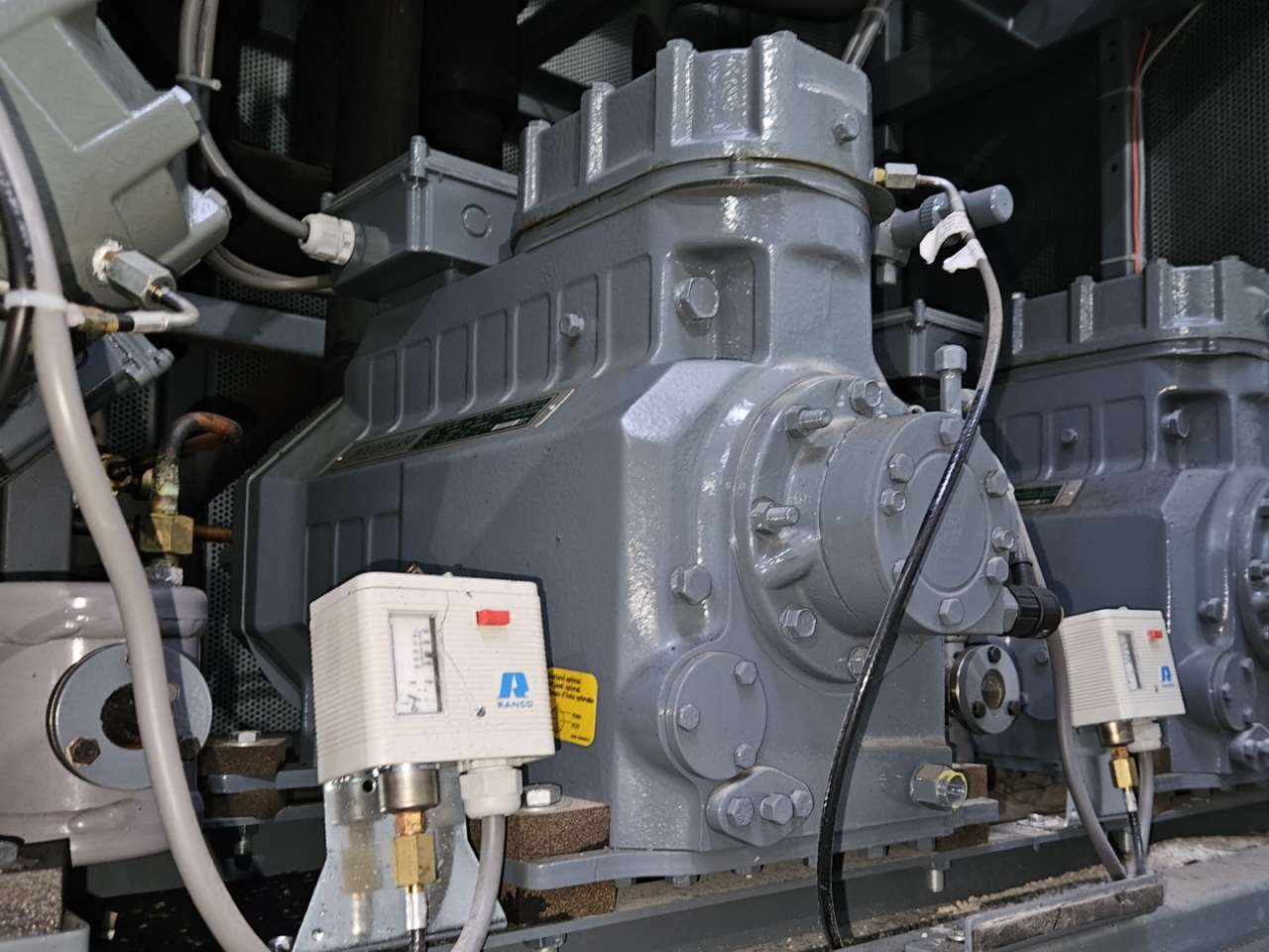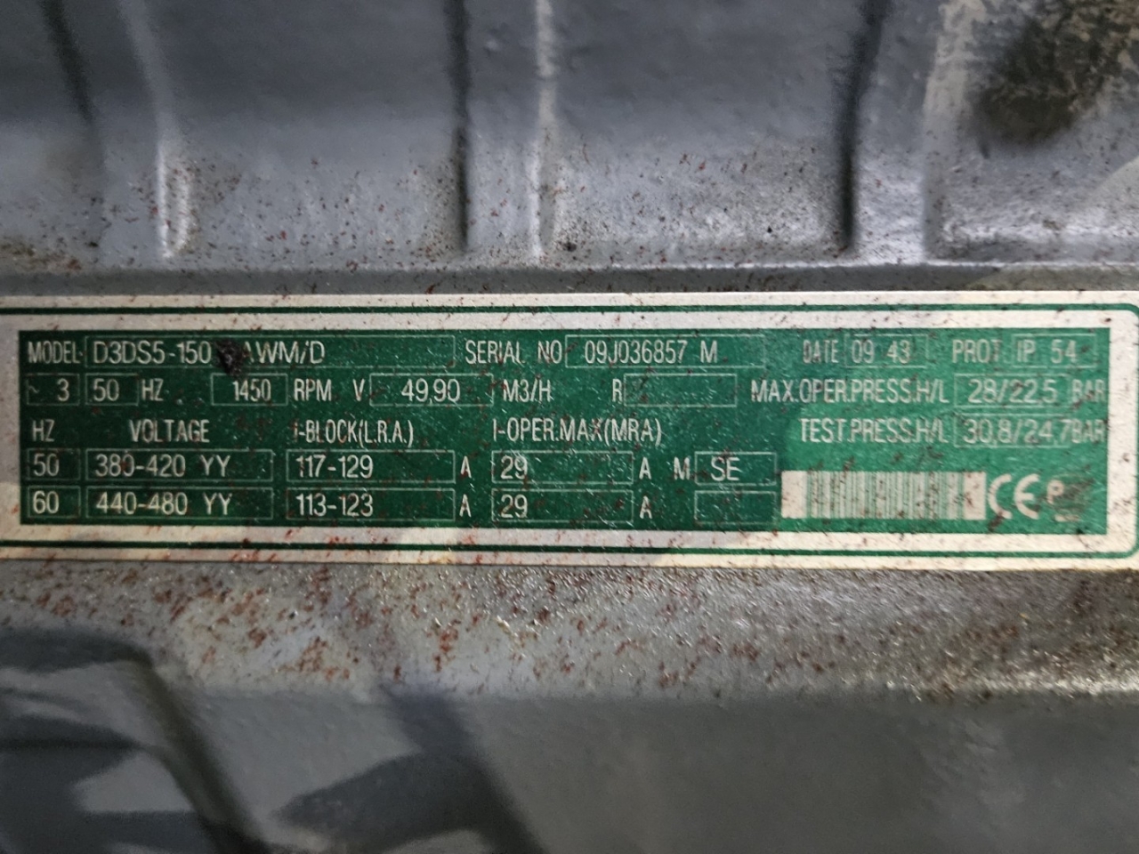 Used DWM D3DS5-150X-AWM/D semi-hermetic reciprocating compressor on Freon with an oil level regulator. The compressor has a displacement of 49,9 m³/h.