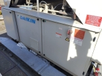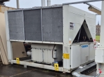 Used Daikin EWAQ340F-XR014 air-cooled chiller on R410A. Complete with 4 Copeland ZP385KCE-TWD-522 scroll compressors, condensor with 6 fans that produce an total airflow of 84.333 m³/h, brazed heat exchanger as evaporator and a control cabinet with a Microtech 3 controller. The chiller has a cooling capacity of 340 kW at a water entry/leaving temperature of 12°C/7°C and ambient temperature of 35°C.