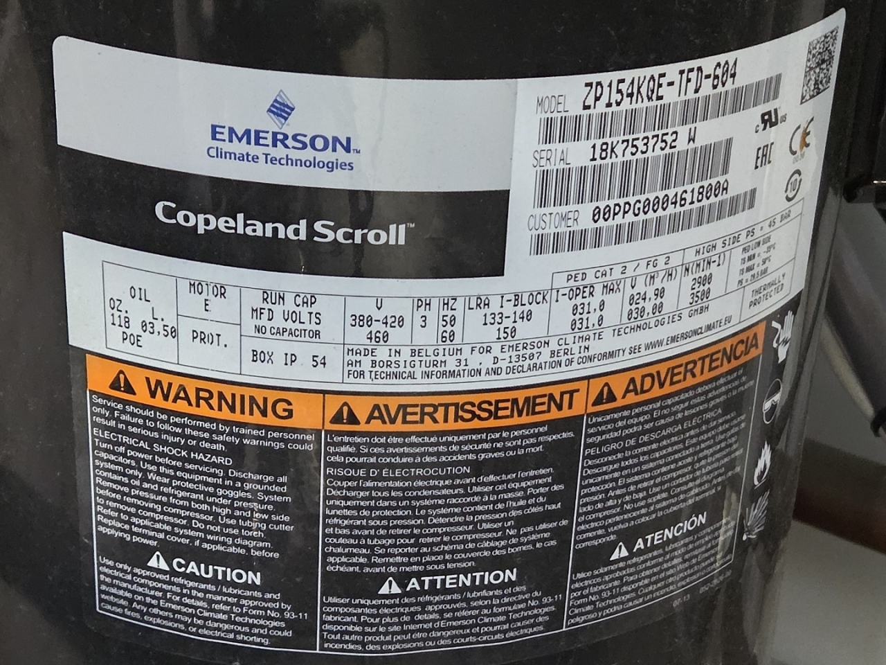 x2 Copeland ZP154KQE-TFD-604