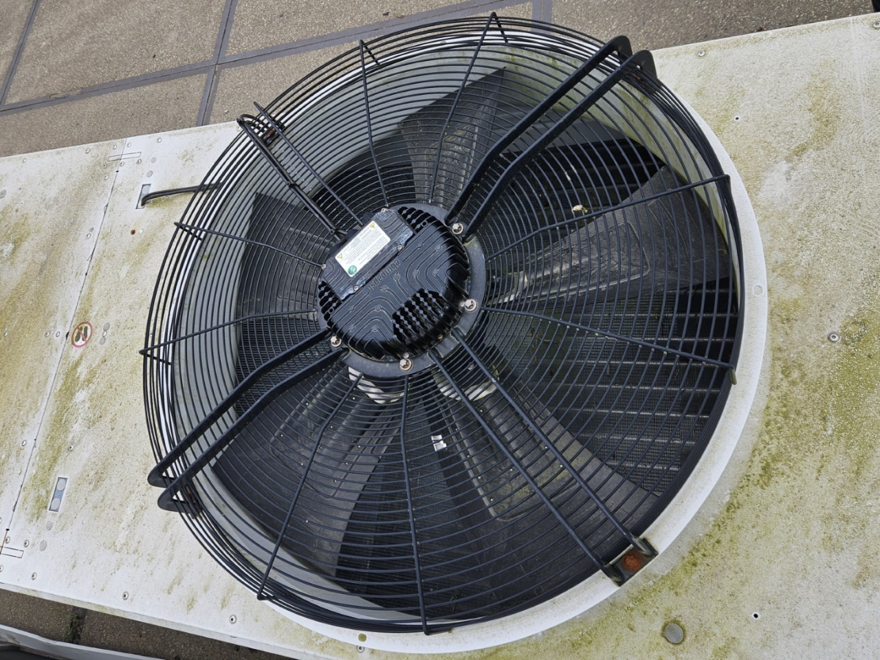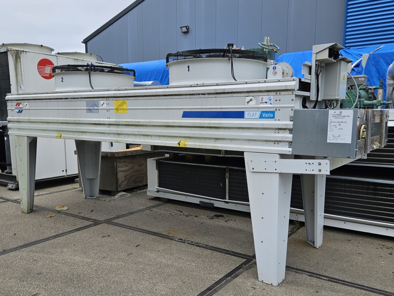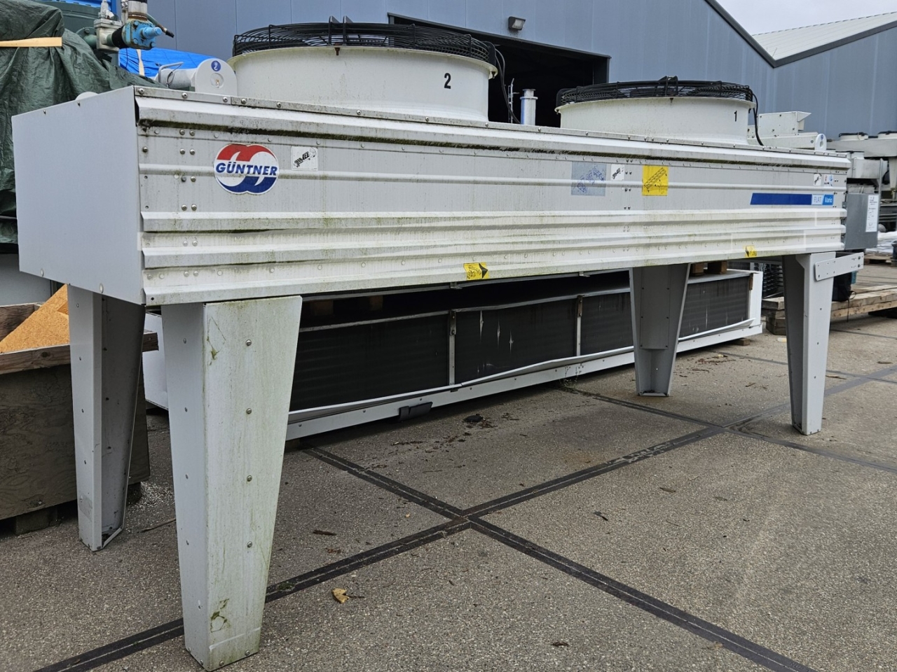 New Güntner GFHV FD 090.2NF/12E-52 drycooler built in 2021. Complete with 2 EBM-Papst S3G910-CS22-09 fans - 50/60 Hz - 1,55 kW - 825 RPM - diameter 910 mm and a total airflow of 41.100 m³/h.