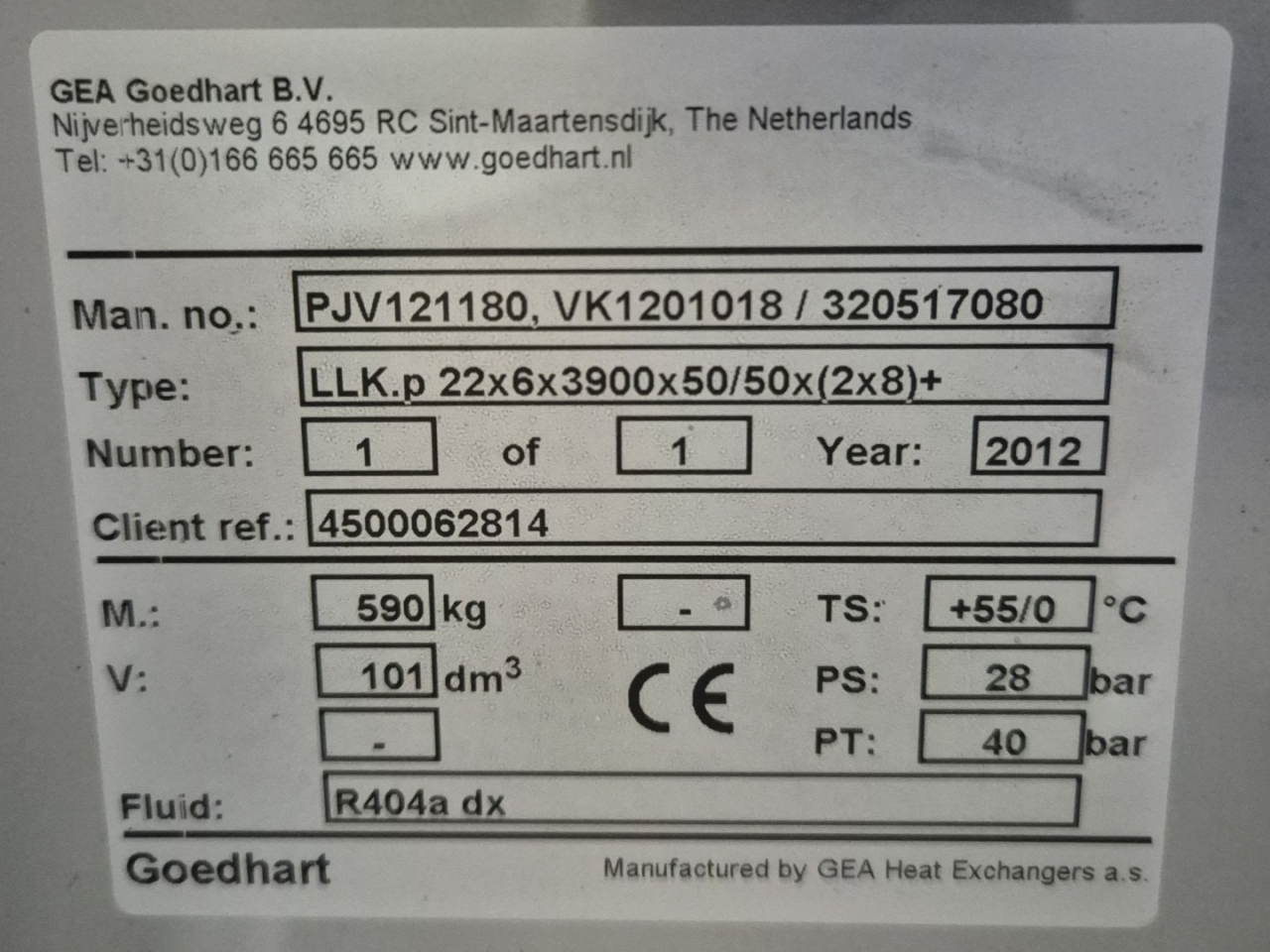 New Goedhart LLK.p 22x6x3900x50/50x(2x8)+ Freon evaporator. Please notice that we can deliver this evaporator with 4 suitable fans that have an diameter of 780 mm & the capacity is based on an airflow of 40.000 m³/h.