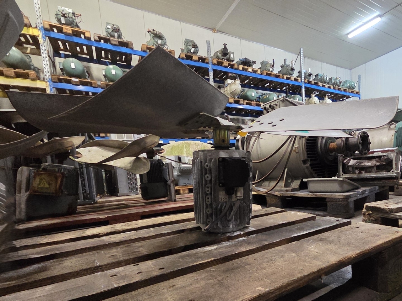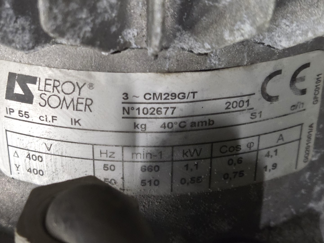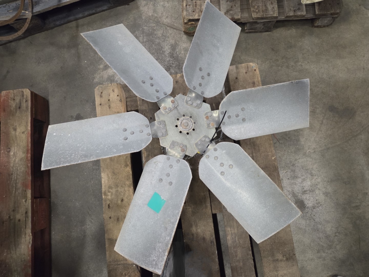Used Leroy Somer CM29G/T fan with the following specifications: 50 Hz - 1,1/0,55 kW - 660/510 RPM - diameter 910 mm. Dimensions: 910x910x390 mm (LxWxH).
