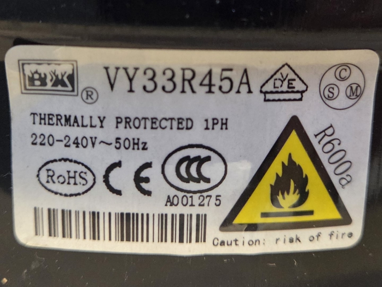 New in the box Daewoo VY33R45A reciprocating compressor on R600a (Isobutane) for refrigerator.