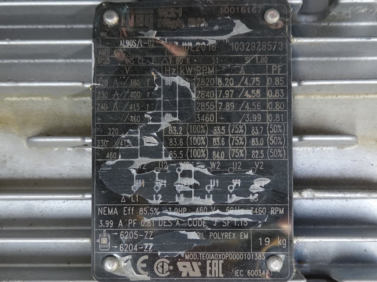 Used Baltimore water pump with a Weg AL90S/L-02 electric motor: 50/60 Hz - 2,2 kW - 2820/3460 RPM. Dimensions: 500x400x300 mm (LxWxH).