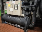 Used Trane RTHC C2 water-cooled chiller on Freon R134a. Complete with Trane CHHC1C2F0H0 semi-hermetic screw compressor, Trane CDS 2B shell and tube condenser, Trane EVP 3B shell and tube evaporator and control cabinet with a Trane Adaptive control.