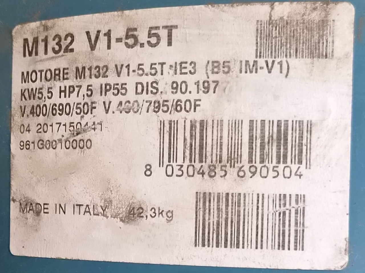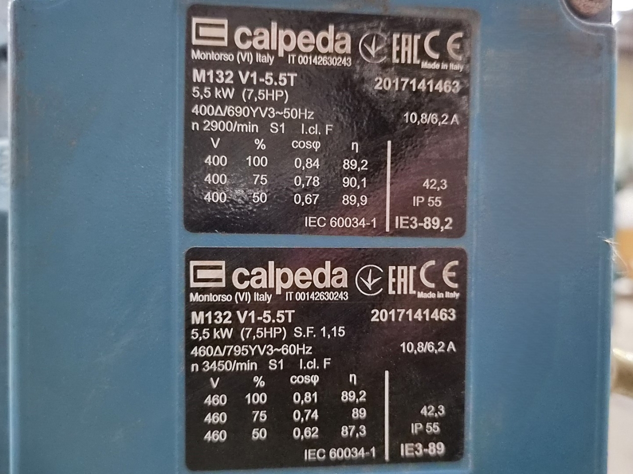 Used Calpeda MXV 80-4802/C water pump with the following specifications: Qmax: 60,0 m³/h - Hmax: 36,0 m - Pmax: 5,5 kW. Dimensions: 560x330x950 mm (LxWxH) & 93,8 kg.