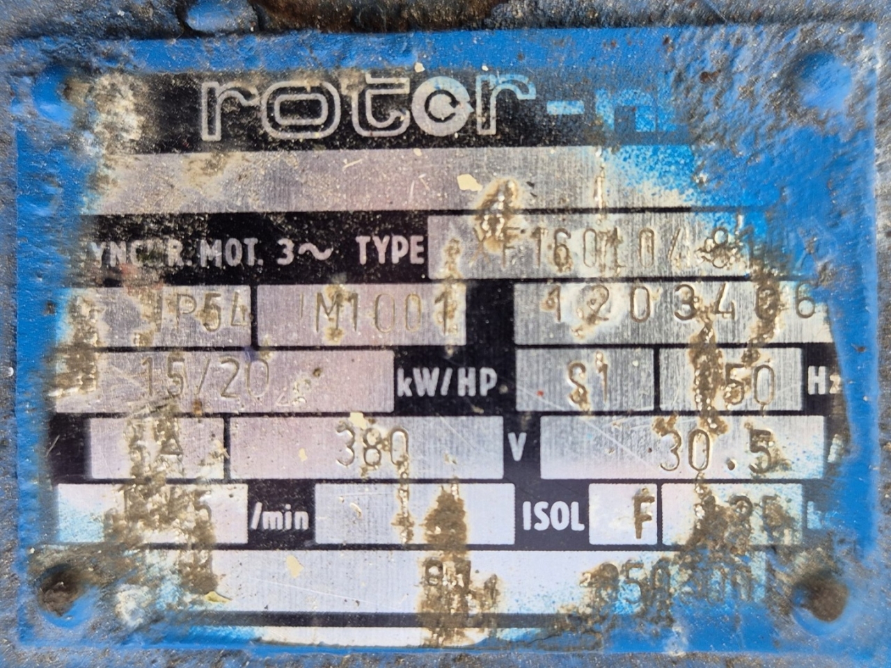 Used Rotor XF160L04 810X electric motor with the following specifications: 50 Hz - 15 kW - 1445 RPM.