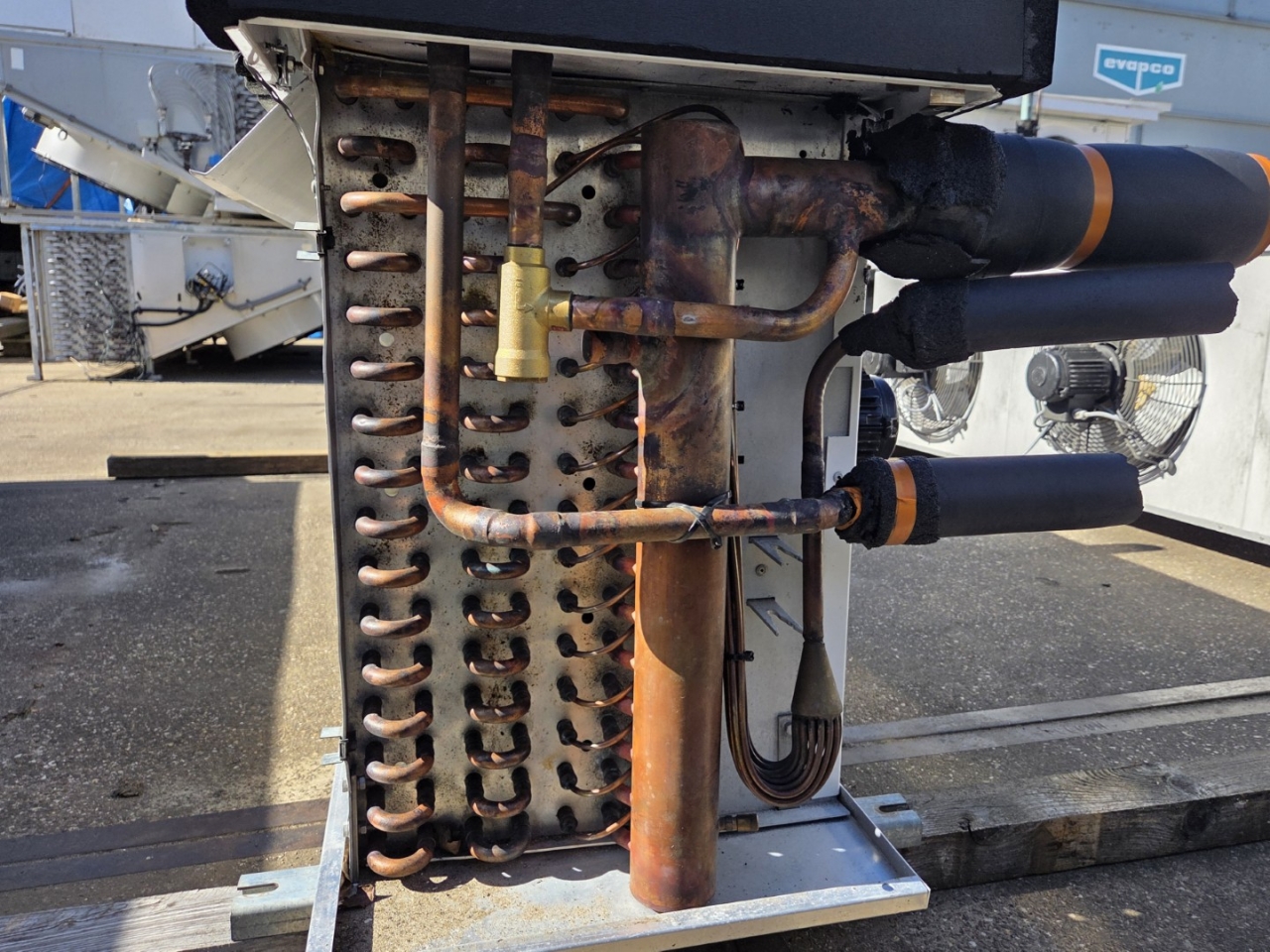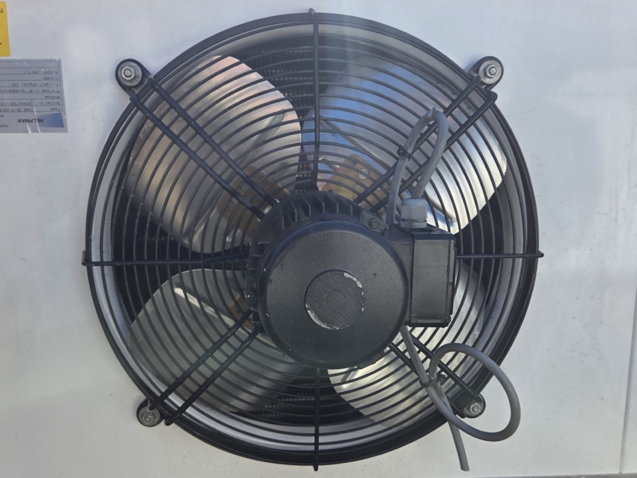 Used Helpman LEX 26-7 Freon evaporator with hot gas defrost. Complete with 3 ATB AFT71-4A-7 fans - 50/60 Hz - 0,25 kW - 1410/1710 RPM - diameter 456 mm and a total airflow of 15.300 m³/h.