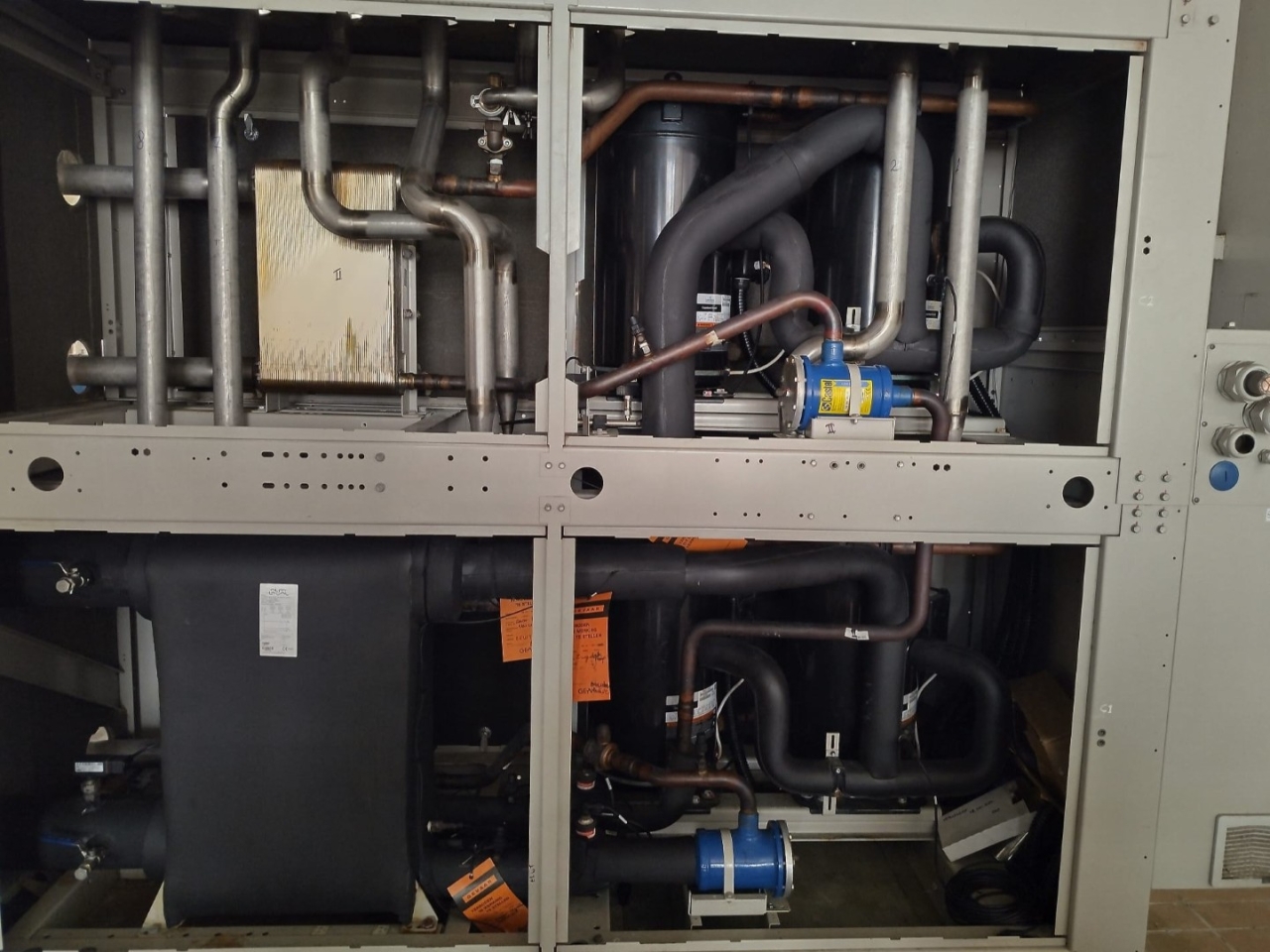 *All components of this used chiller will be tested on adequate performance, leak free condition (condensing blocks, compressors, fans, control panel, and so forth). Choosing HOSBV means buying with warranty. We perform a industrial cleaning. if requested we can arrange your shipment.