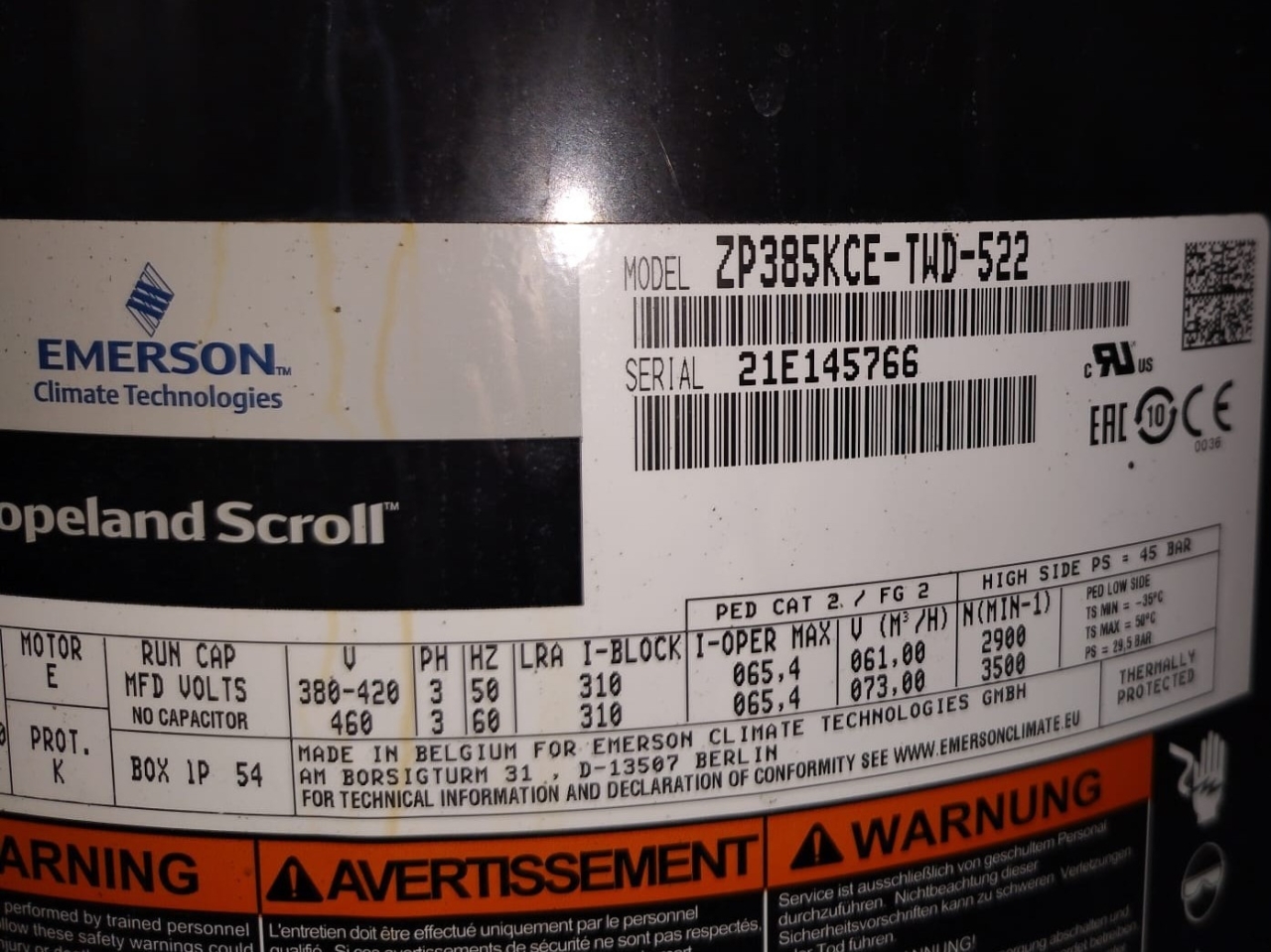 4x Copeland ZP385KCE-TWD-522
